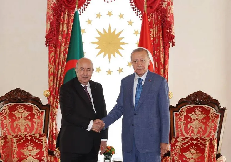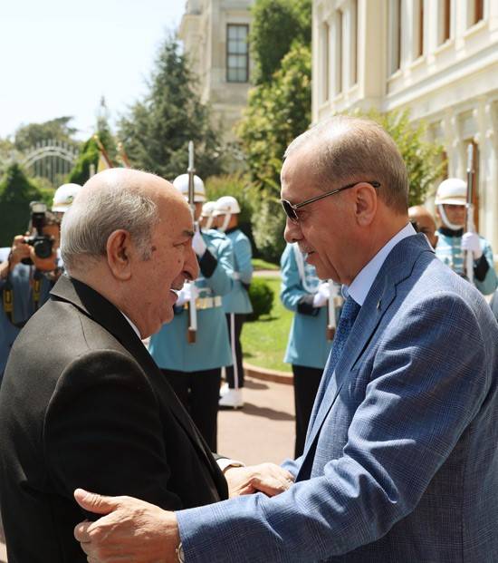 أجرى الرئيسان التركي رجب طيب إردوغان والجزائري عبد المجيد تبون، اليوم السبت، مباحثات حول سبل تطوير العلاقات بين البلدين، والقضايا الإقليمية والدولية ذات الاهتمام المشترك.