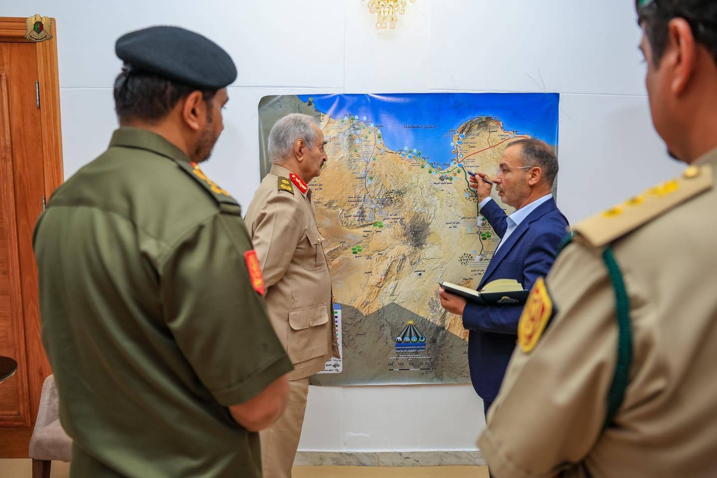 في غضون ذلك، أعلن حفتر أنه أشرف بشكل مباشر على أعمال الصيانة لخط نقل المياه بين مدينتي أجدابيا وبنغازي، مشيرا إلى أنه تابع لدى اجتماعه مساء (السبت) بمقره في بنغازي مع رئيس اللجنة الإدارية لجهاز «النهر الصناعي» أحمد الديب، ما وصلت إليه فرق التشغيل والصيانة بالجهاز، بعد الأعمال التخريبية التي طالت خطوط نقل المياه بمدينة أجدابيا.