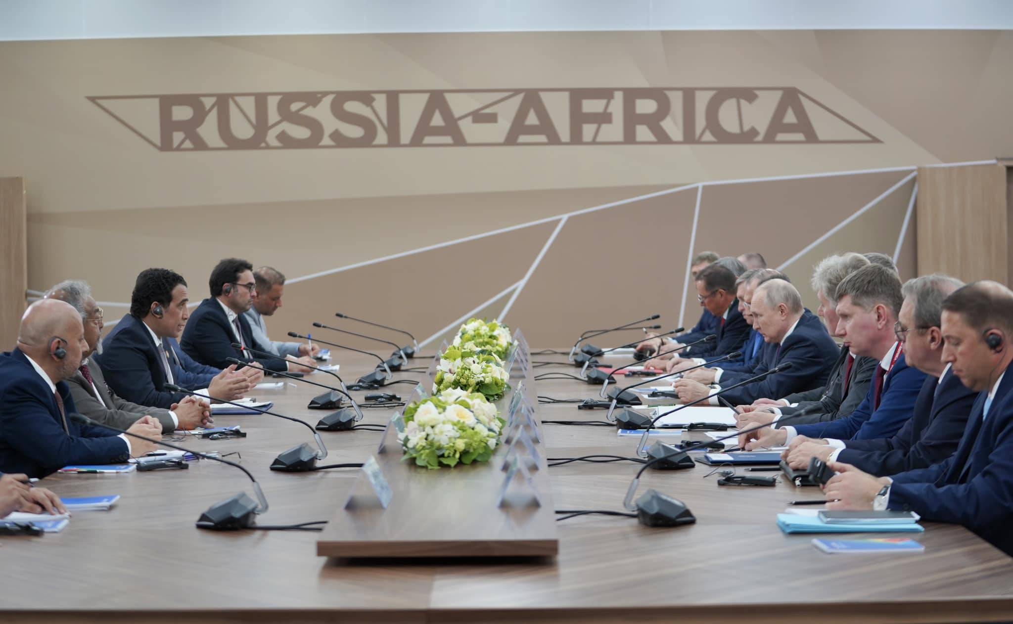 وقال المنفي في بيان وزعه مكتبه إنه أكد في المقابل على «أهمية القمة والشراكة الروسية - الأفريقية في خلق الاستقرار بالقارة، والأمن الغذائي العالمي»، لافتاً إلى امتلاك المجلس الرئاسي «رؤية شاملة لتحقيق الاستقرار، ويعمل على تنفيذها بالتنسيق الوثيق مع عبد الله باتيلي، ما يتطلب دعم مجلس الأمن لاستمرار جهود المصالحة الوطنية، بالشراكة مع الاتحاد الأفريقي».