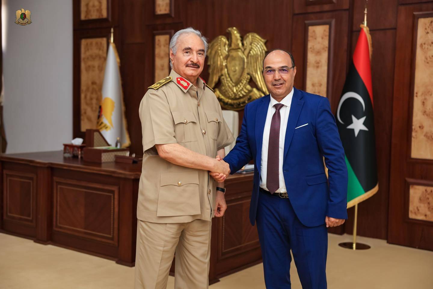 لقاء حفتر مع رئيس بلدية بنغازي (الجيش الوطني)