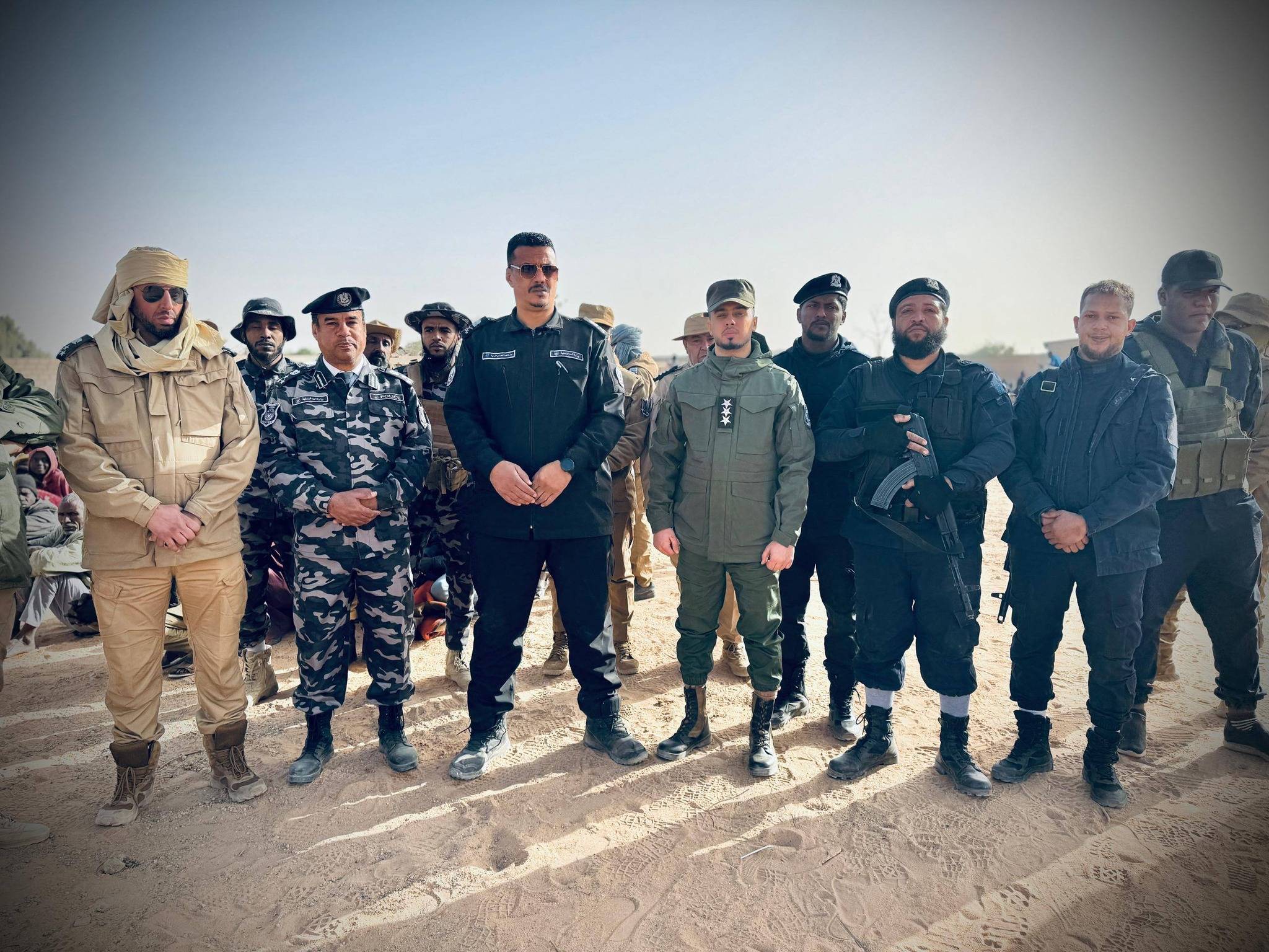 جانب من القوة الأمنية والعسكرية التي شاركت في حملة المداهمات (مديرية أمن سبها)