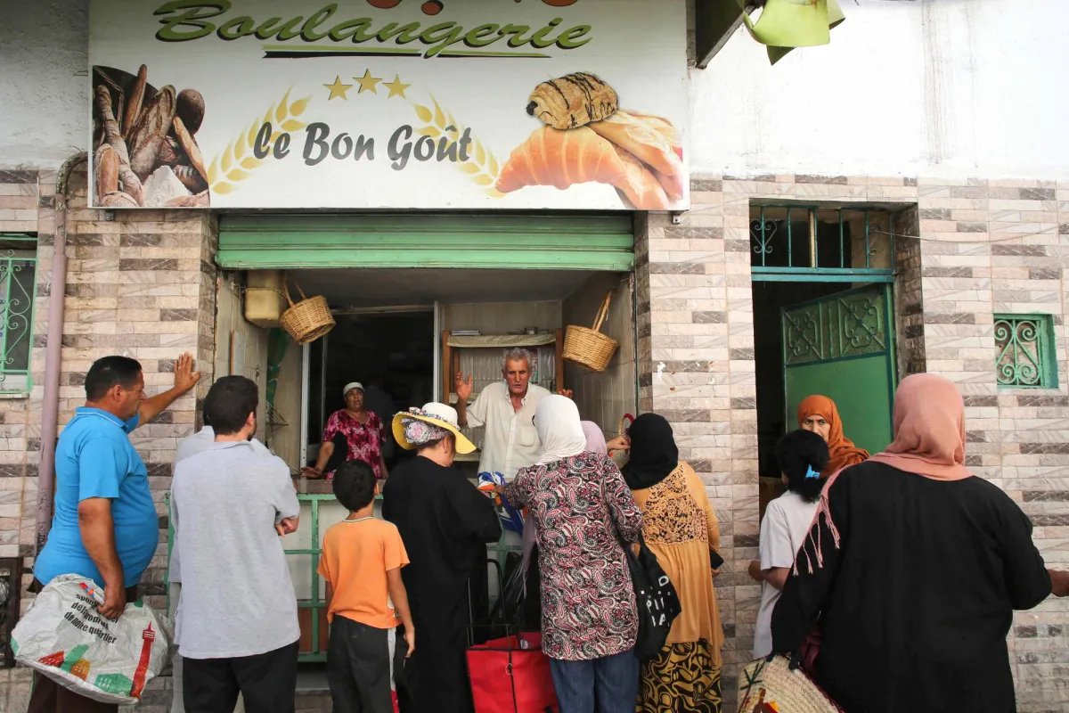 تونسيون ينتظرون في طوابير يومية طويلة دورهم للحصول على رغيف الخبز (أ.ف.ب)