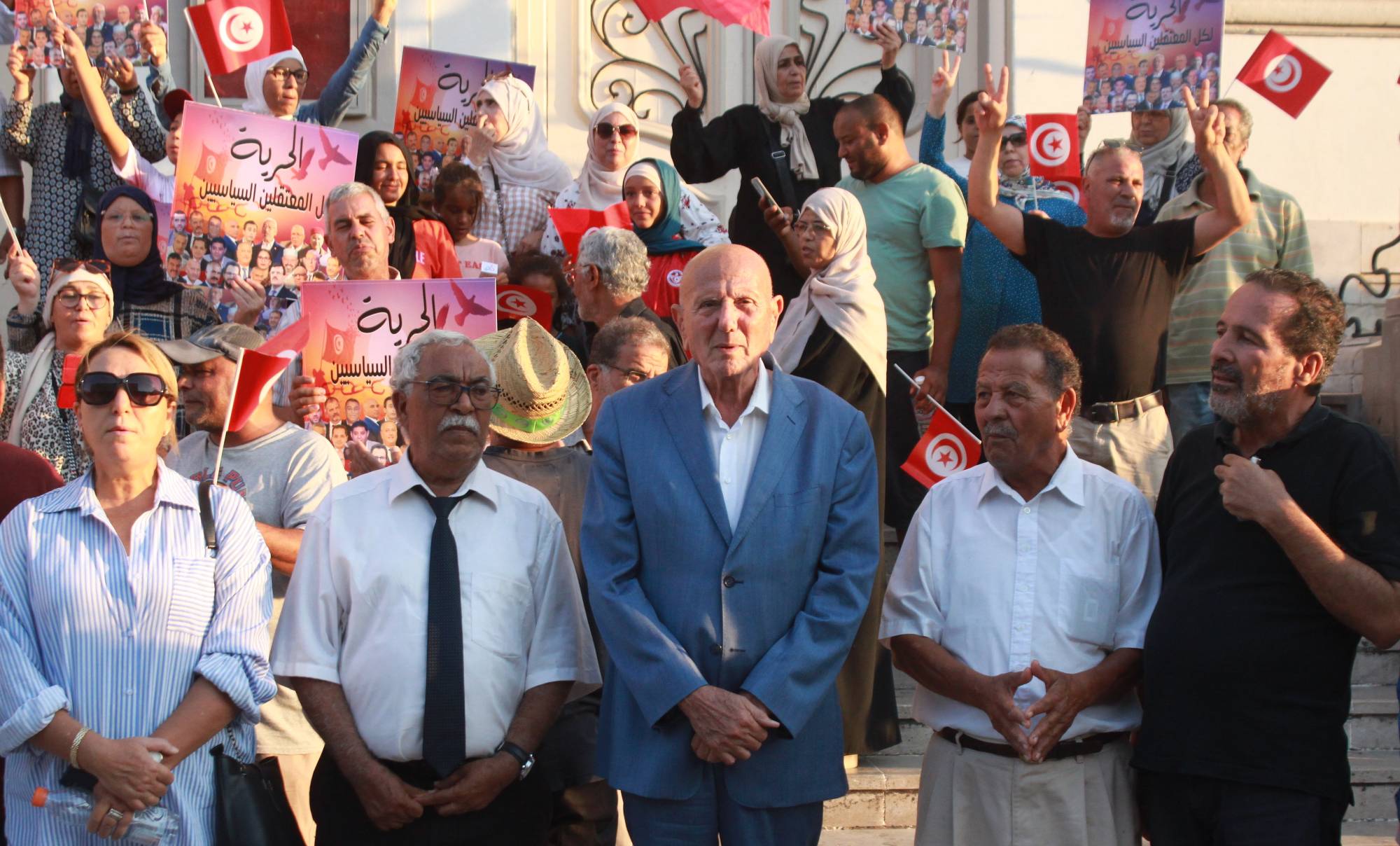 وقال أحمد نجيب الشابي، رئيس جبهة الخلاص الوطني، الذي شارك في الوقفة الاحتجاجية في تصريحات صحافية: «لأول مرة يصدر بيان مشترك عن 3 وزارات لتوعد المدونين بالمتابعات القضائية وبالقمع، وهذا هروب إلى الأمام في وجه التحديات الحقيقية».