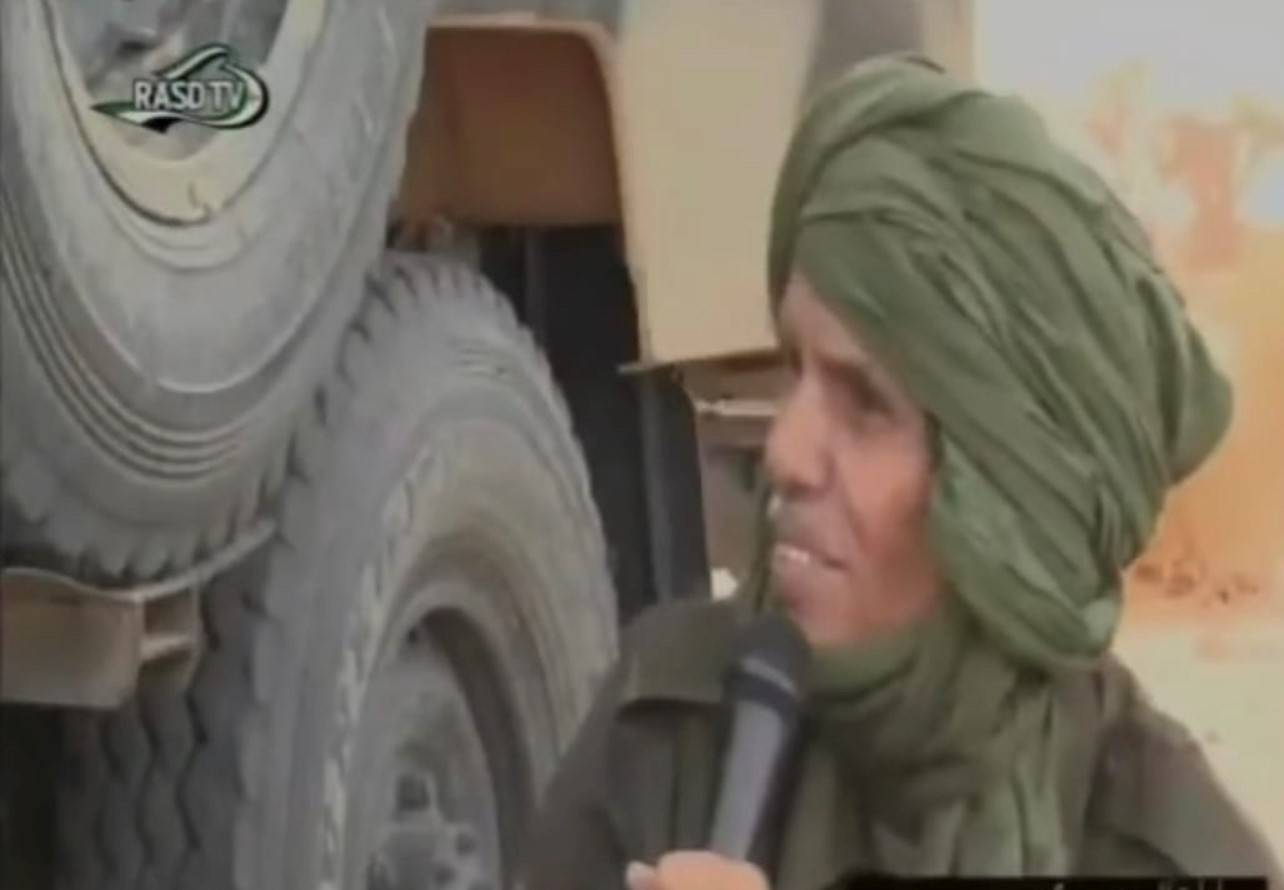 أبا عالي حمودي القيادي في «جبهة البوليساريو» الذي قتل الجمعة( صورة ملتقطة من تلفزيون الجبهة)