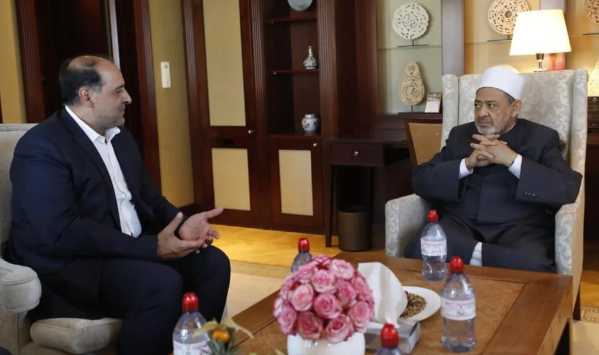 ومن جانبه، قال السفير الإيراني إن «إيران تؤمن بقوة الأزهر وقدرته على توحيد المسلمين وتوجيههم إلى الطريق الصحيح، والوقوف في وجه من يحاولون نشر الصور (النمطية المنحرفة والمغلوطة) عن صحيح الدين الإسلامي»، مؤكداً «ترحيب بلاده بـ(الحوار الإسلامي - الإسلامي) الذي دعا إليه شيخ الأزهر في (ملتقي البحرين للحوار)، وتقديرهم مشروعات التقارب التي يتبناها شيخ الأزهر بين مختلف مدارس الفكر الإسلامي».