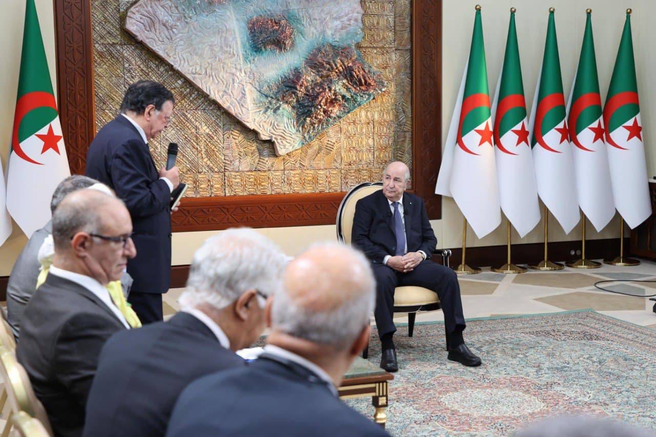 وبحسب ما نقلته وسائل الإعلام التي حضرت اللقاء عن الرئيس، فإن الوضع العام في البلاد لا يدعو إلى القلق على الصعيد الاقتصادي وعلى صعيد الحريات، مؤكداً أنه «أفضل مما كان عليه في عهد الرئيس السابق عبد العزيز بوتفليقة (1999 - 2019). ومبرزاً أن الاقتصاد الوطني «بخير وبدأ يسجل نتائج مشجعة للغاية»، وضرب مثالاً على ذلك بعائدات المحروقات التي ارتفعت، وبالمنتجات التي صدّرتها الشركات الخاصة إلى الخارج، والتي بلغت قيمتها 8 مليارات دولار عام 2022، مشيراً إلى أنه «إنجاز لم يتحقق أبداً من قبل».