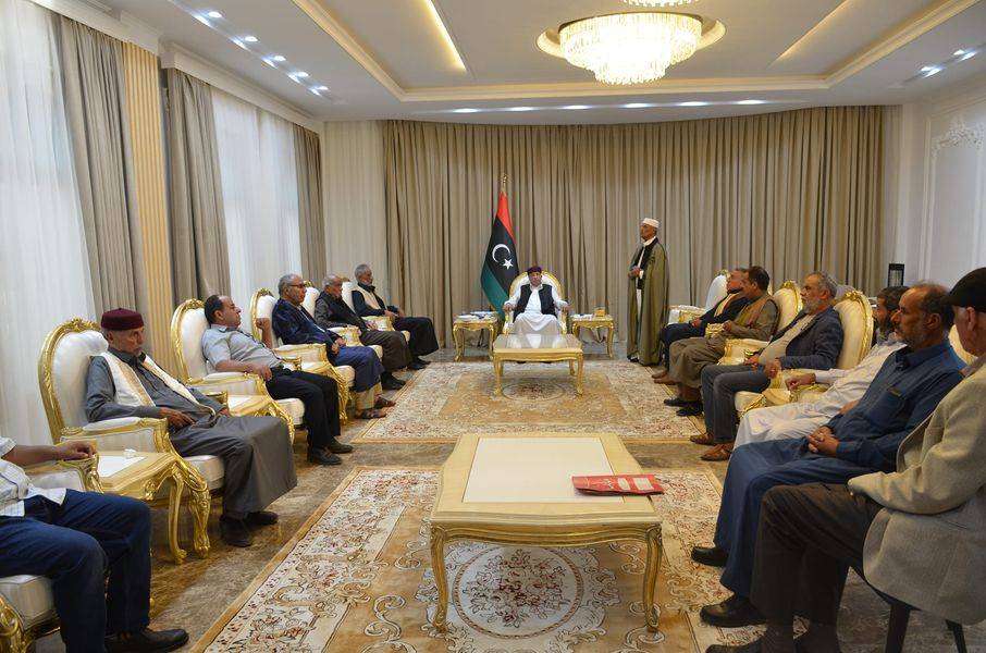 بدوره، نقل رئيس مجلس النواب عقيلة صالح عن وفد من قبيلة «منصور أعبيدات»، التقاه الأحد في مدينة القبة، تأييده لقوانين الانتخابات الرئاسية والبرلمانية التي أصدرها مجلس النواب، وفقاً لمخرجات لجنة «6+6».