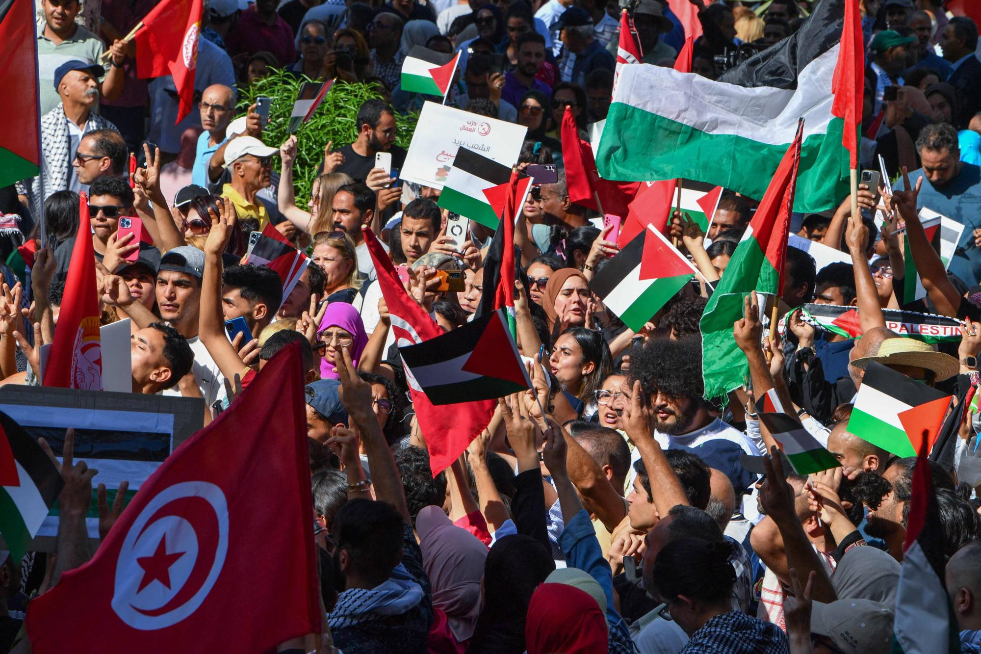 جانب من مظاهرات التونسيين وسط العاصمة للتضامن مع سكان غزة (أ.ف.ب)