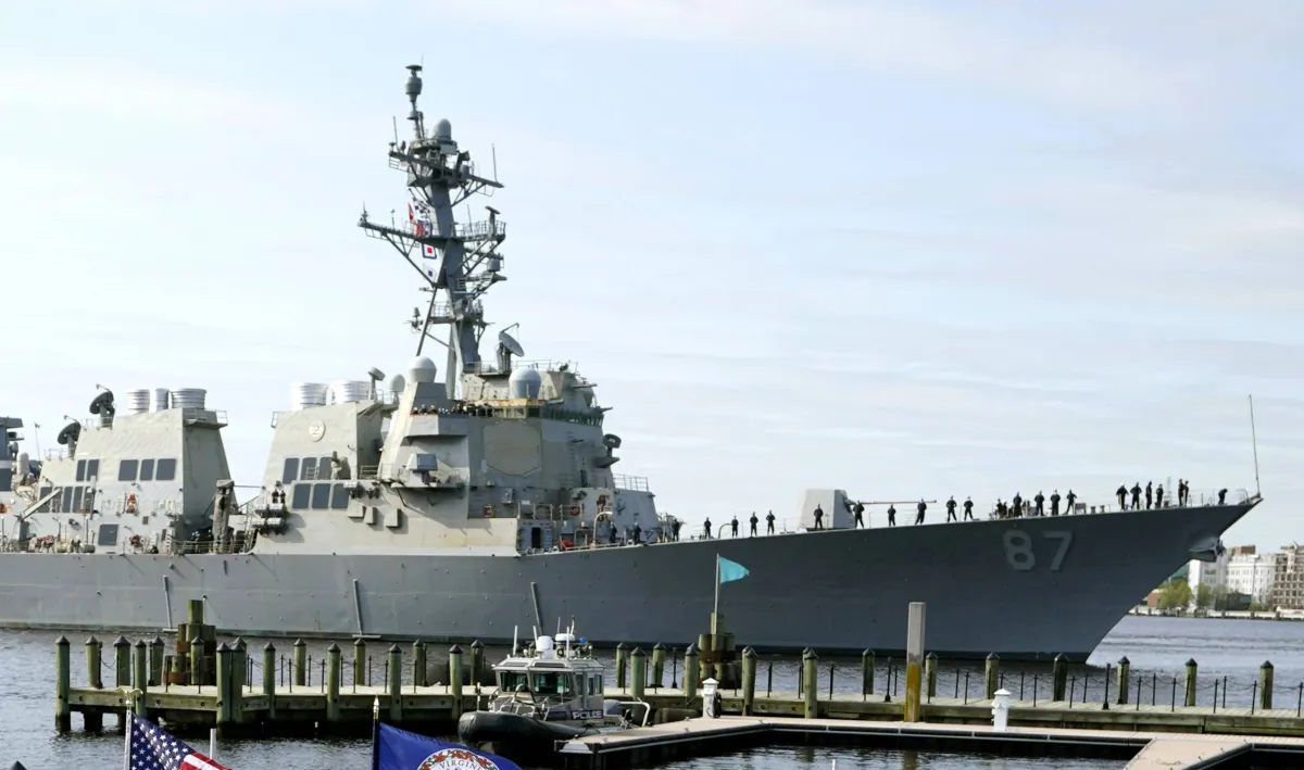 مدمّرة أميركية تقول واشنطن إنها أسقطت طائرة من دون طيار يشتبه بأنها تابعة للحوثيين تحلّق في اتجاهها خلال حادث أُطلق فيه صاروخان بالقرب من باب المندب (أ.ب)