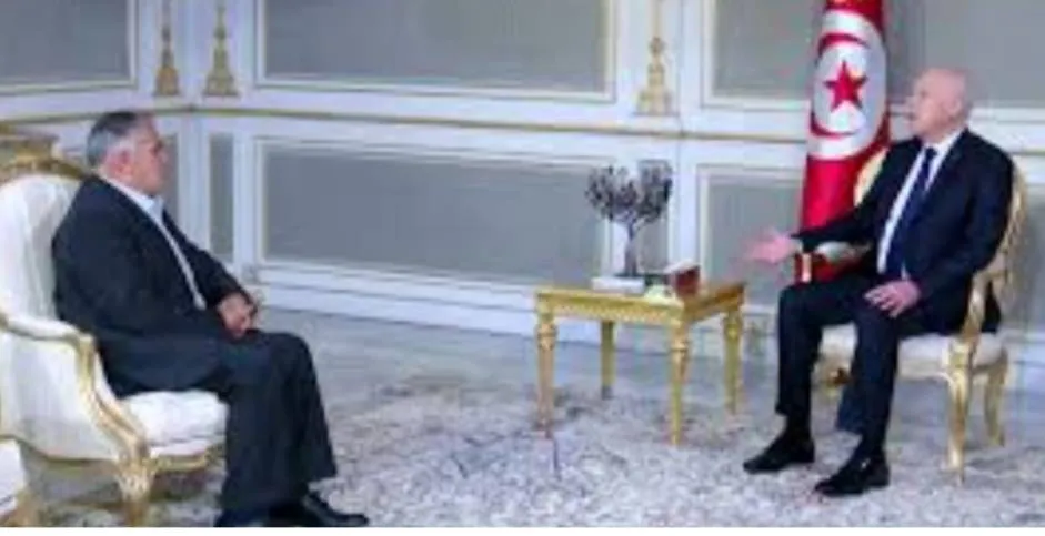الرئيس التونسي قيس سعيد مع رئيس منتدى الحقوق الاقتصادية والاجتماعية التونسي عبد الرحمن الهذيلي (الرئاسة التونسية)