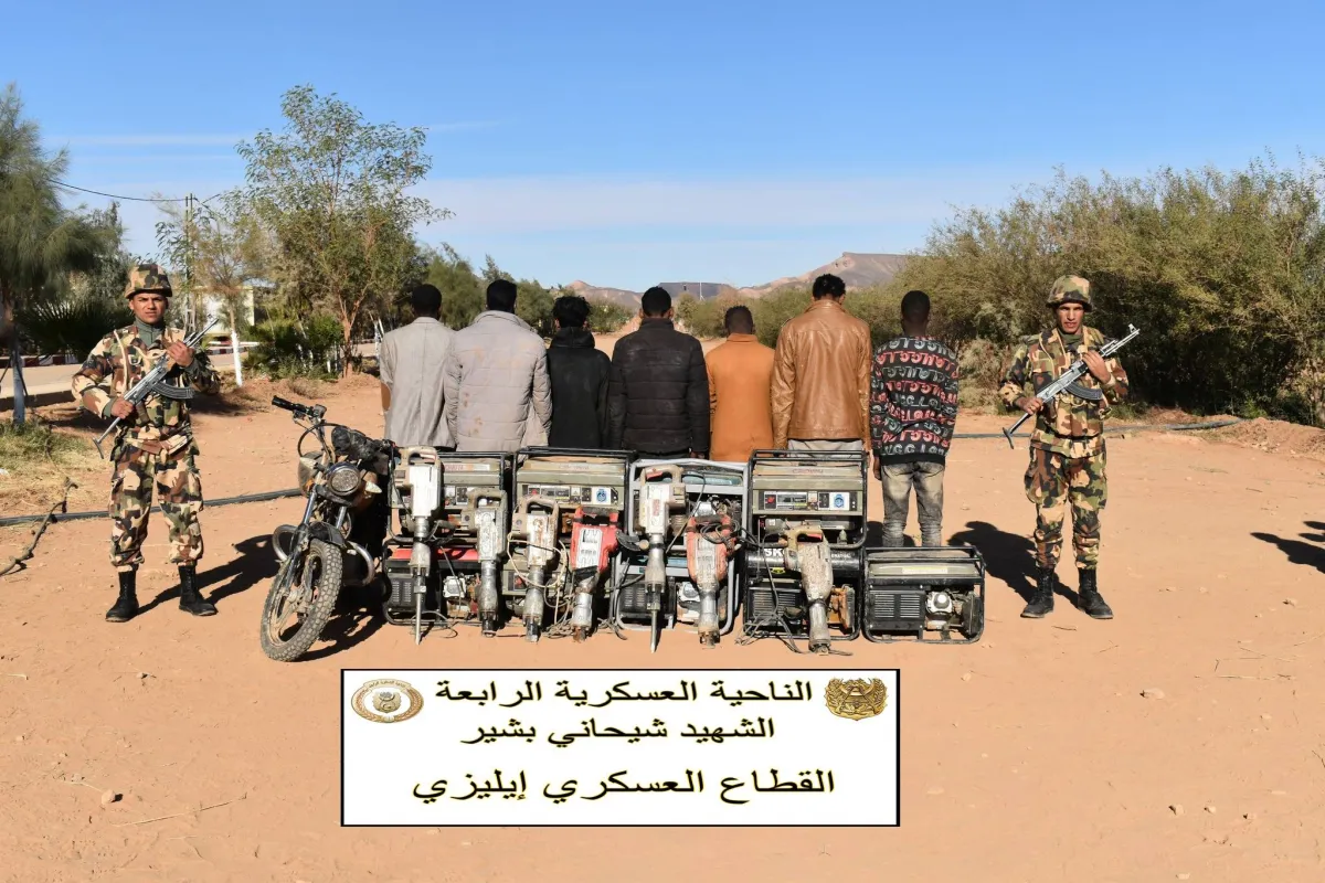 كما شملت العمليات مناطق في أقصى الجنوب، حيث تم اعتقال 208 أشخاص بتهمة التهريب، ومصادرة 48 مركبة تابعة لهم و232 مولداً كهربائياً، و124 مطرقة ضغط و24 جهازاً للكشف عن المعادن و46 قنطاراً من خام الذهب والحجارة، بالإضافة إلى كميات من المتفجرات ومعدات تفجير وتجهيزات تُستعمل في عمليات التنقيب غير المشروع عن الذهب. كما تم توقيف 59 شخصاً آخر، وضبط مسدسين رشاشين من نوع «كلاشنيكوف»، و31 بندقية صيد، ومسدس آلي، ونحو 49 ألف لتر من الوقود، و271 طنَّ مواد غذائية موجهة للتهريب، و15 قنطاراً من مادة التبغ، و13 ألف وحدة من مختلف المشروبات.