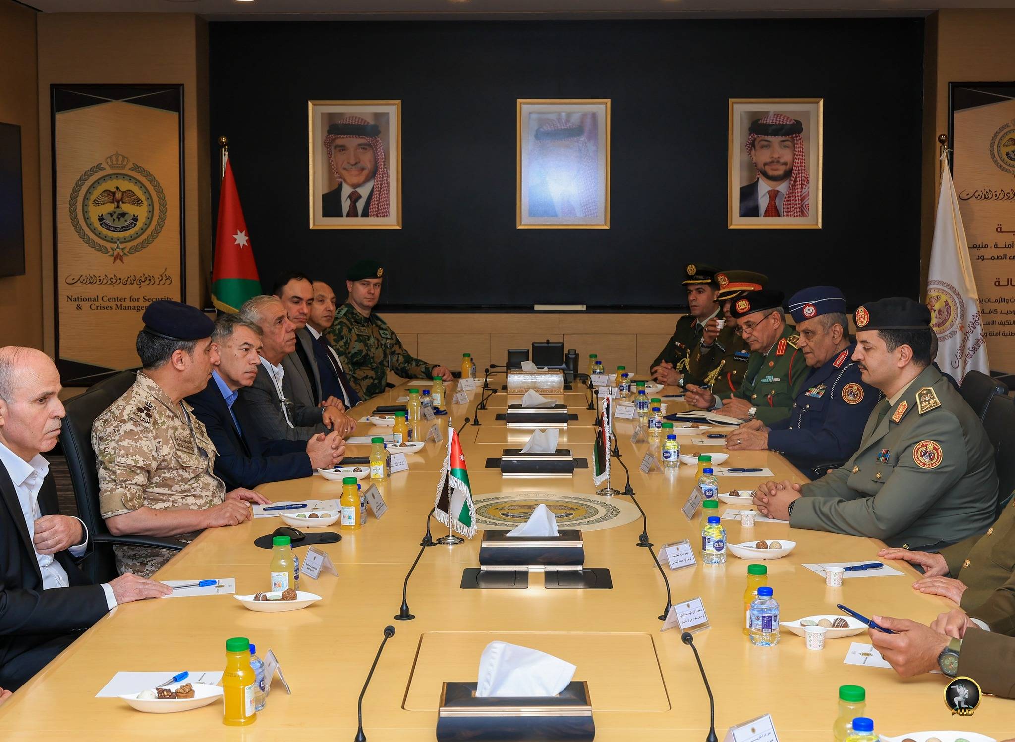 وفد القيادة العامة لـ«الجيش الوطني» الليبي في اجتماع مع نائب رئيس «المركز الوطني للأمن وإدارة الأزمات» العميد حاتم الزعبي (الجيش الوطني)