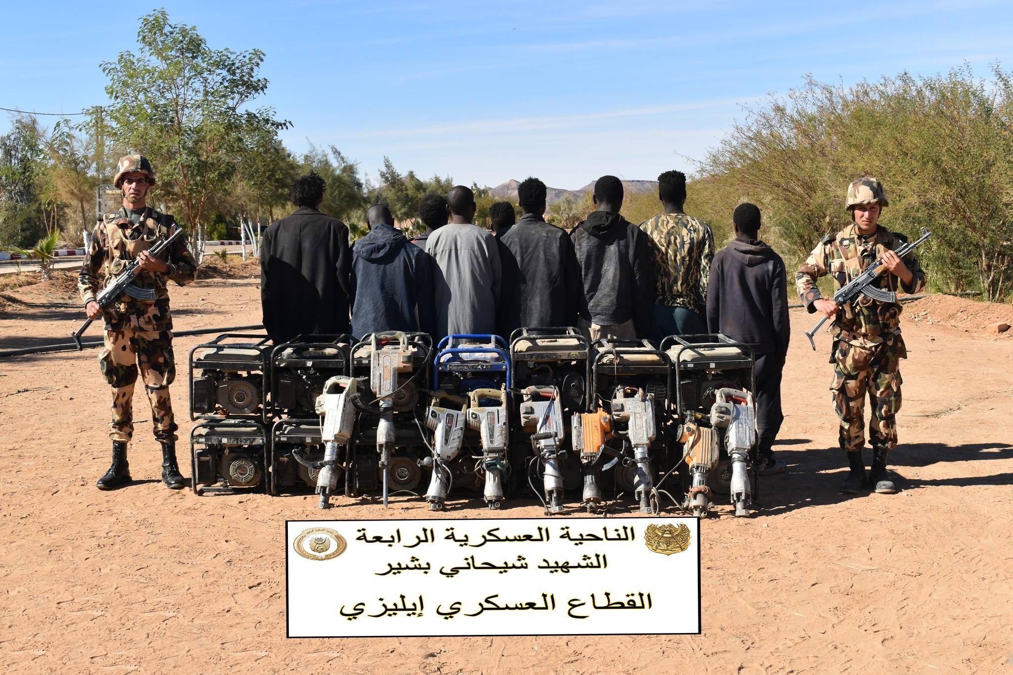 كما تم توقيف 268 مهرباً جنوب البلاد، مع التحفظ على مسدسين رشاشين من نوع «كلاشنيكوف»، و22 بندقية صيد، وثلاثة مسدسات آلية، و19 قنطاراً من خام الذهب والحجارة، إضافة إلى كميات من المتفجرات ومعدات تفجير وتجهيزات تستعمل في عمليات التنقيب غير المشروع عن الذهب.