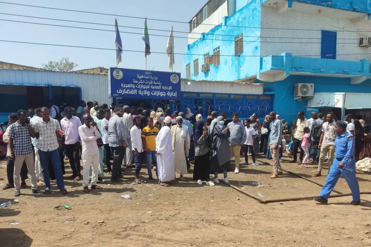 ازدحام أمام أحد مكاتب الخدمات الحكومية في بورتسودان (أ.ف.ب)