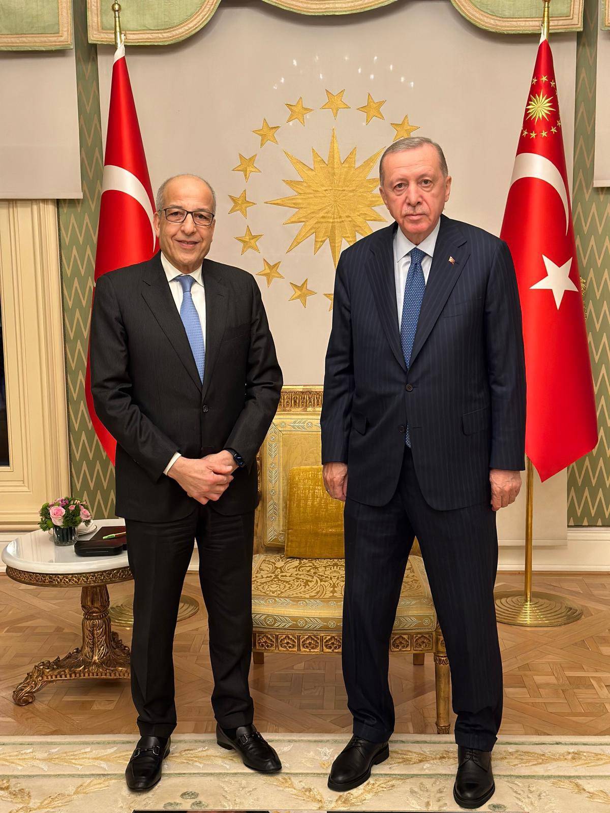 صورة وزّعها مكتب محافظ المصرف المركزي للقائه مع الرئيس التركي في أنقرة