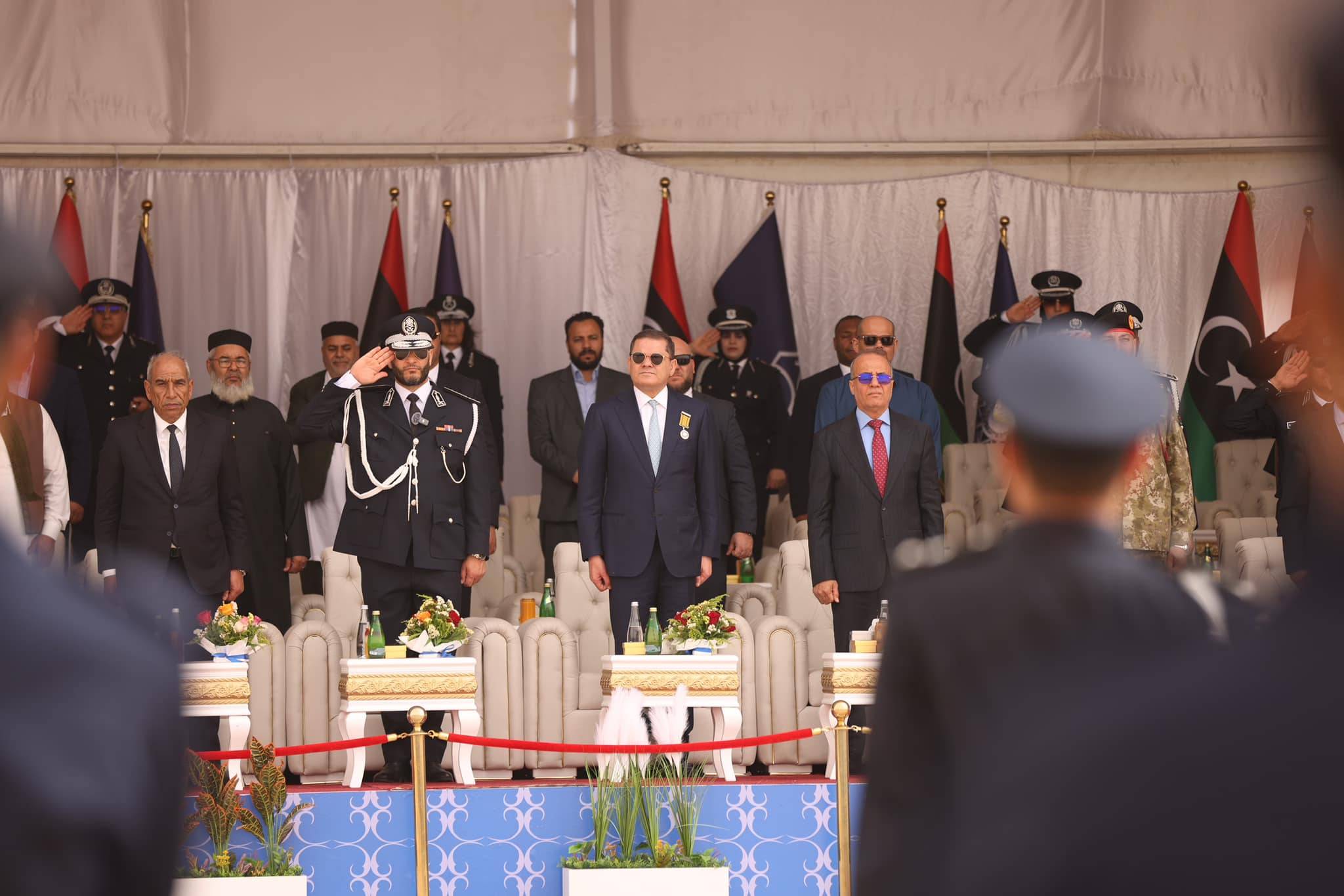 كما عدّ الدبيبة، الذي رصدت وسائل إعلام محلية، اصطحابه نجله عبد الرحمن بالمناسبة، أن حكومته «التي رفعت شعار الاستقرار وعودة الحياة لم تكن جزءاً من المشهد الحالي الأمني، ولا العسكري، بكل مسمياته ولا تعقيداته الحالية، وهو إرث ثقيل فرضته الحروب والفوضى عبر سنوات».