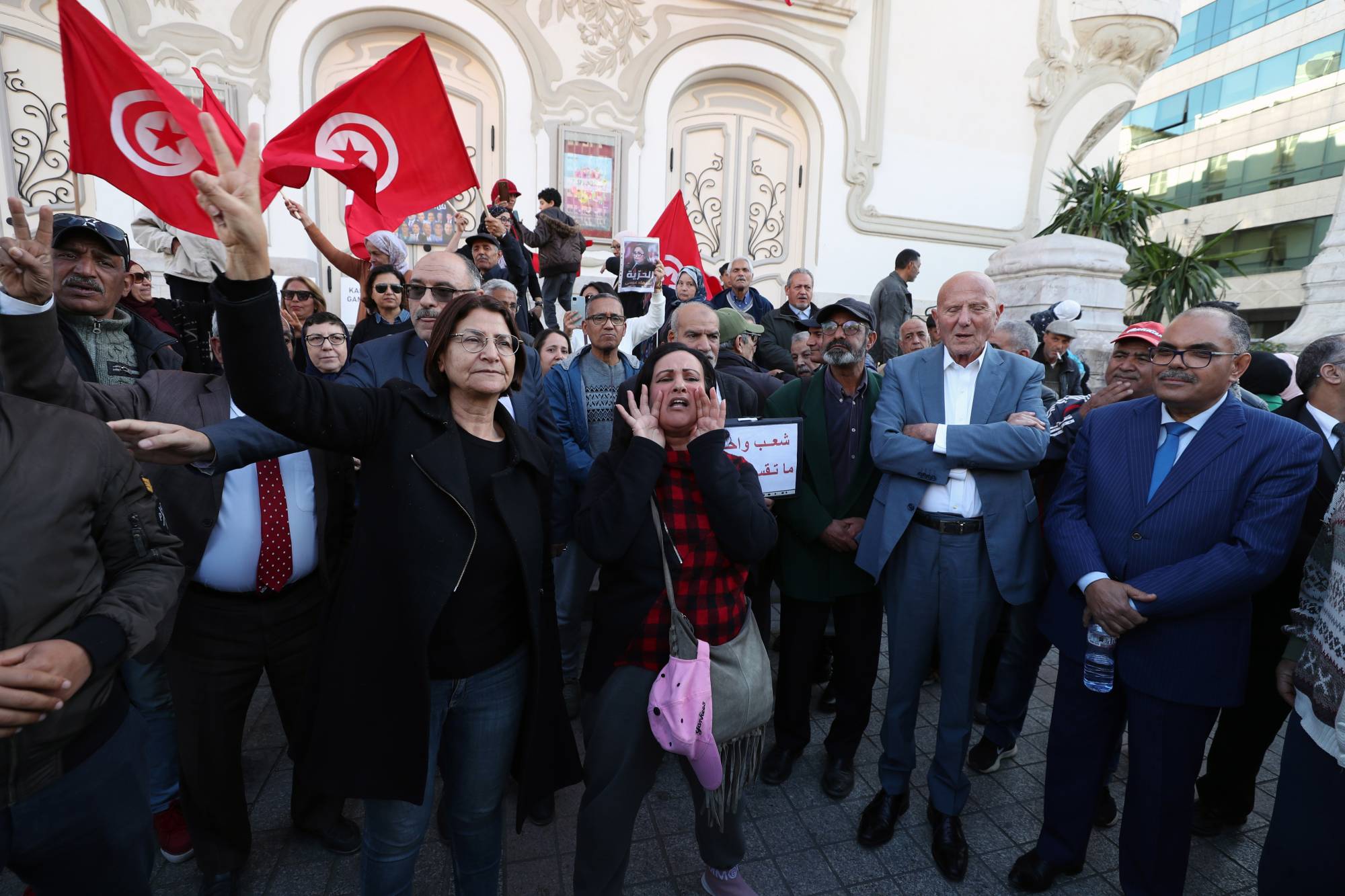ويقبع عشرات من المسؤولين السياسيين، من بينهم المعارضة عبير موسي، فضلاً عن رجال أعمال وصحافيين، وراء القضبان منذ فبراير (شباط) 2023. ووُجهت إلى غالبيتهم تهمة «التآمر ضد أمن الدولة»، وهي تهمة تنطوي على عقوبات شديدة.