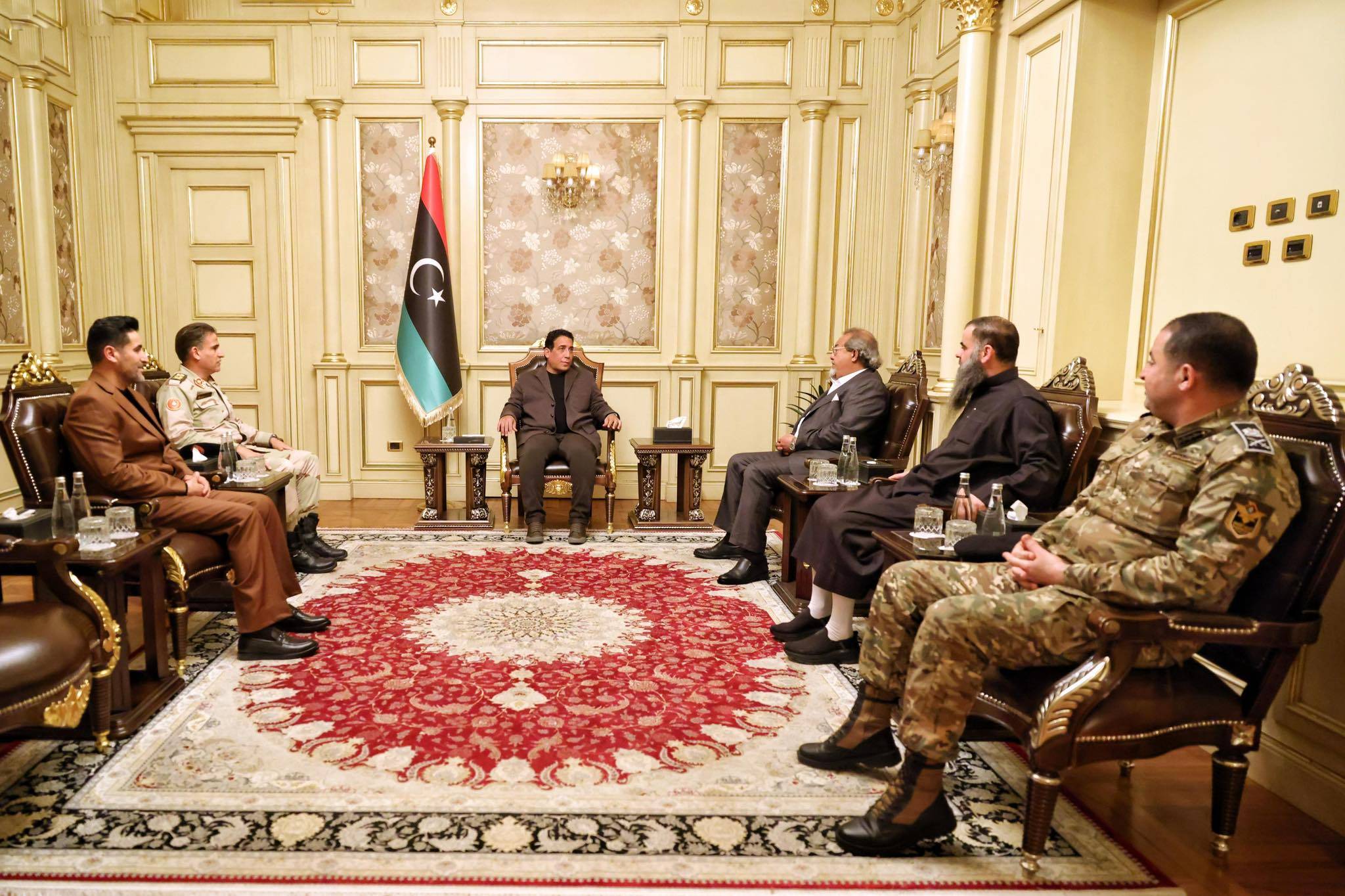 المنفي في لقاء مع قادة عسكريين وأمنيين في العاصمة الليبية طرابلس الثلاثاء (مكتب المنفي)