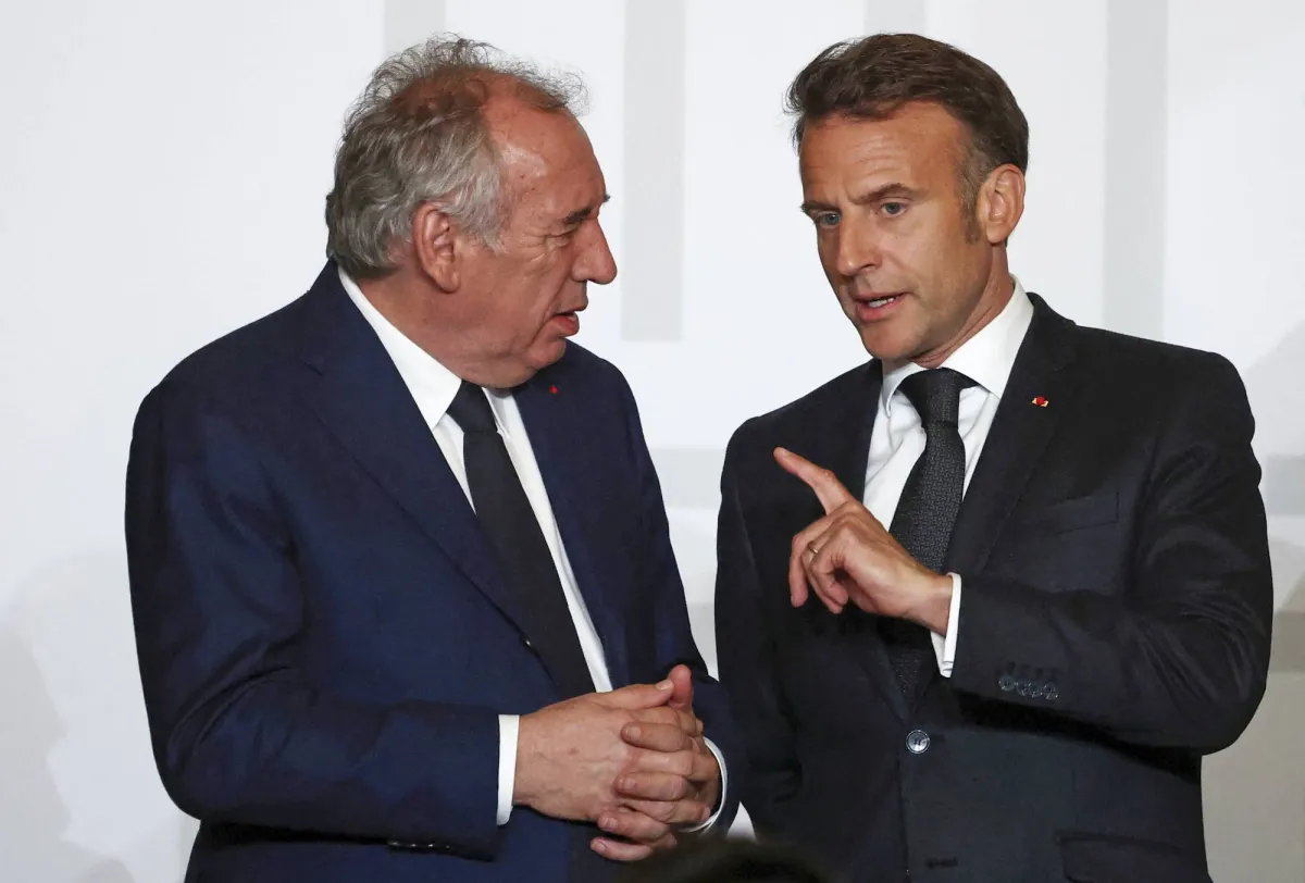 الرئيس الفرنسي إيمانويل ماكرون ورئيس الحكومة فرنسا بايرو في حديث منفرد الأربعاء في قصر الإليزيه (أ.ب)