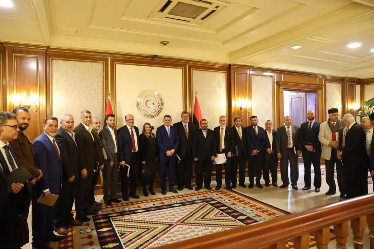 لقاء سابق بين الدبيبة وعدد من الأحزاب الليبية (المكتب الإعلامي لرئيس حكومة الوحدة)