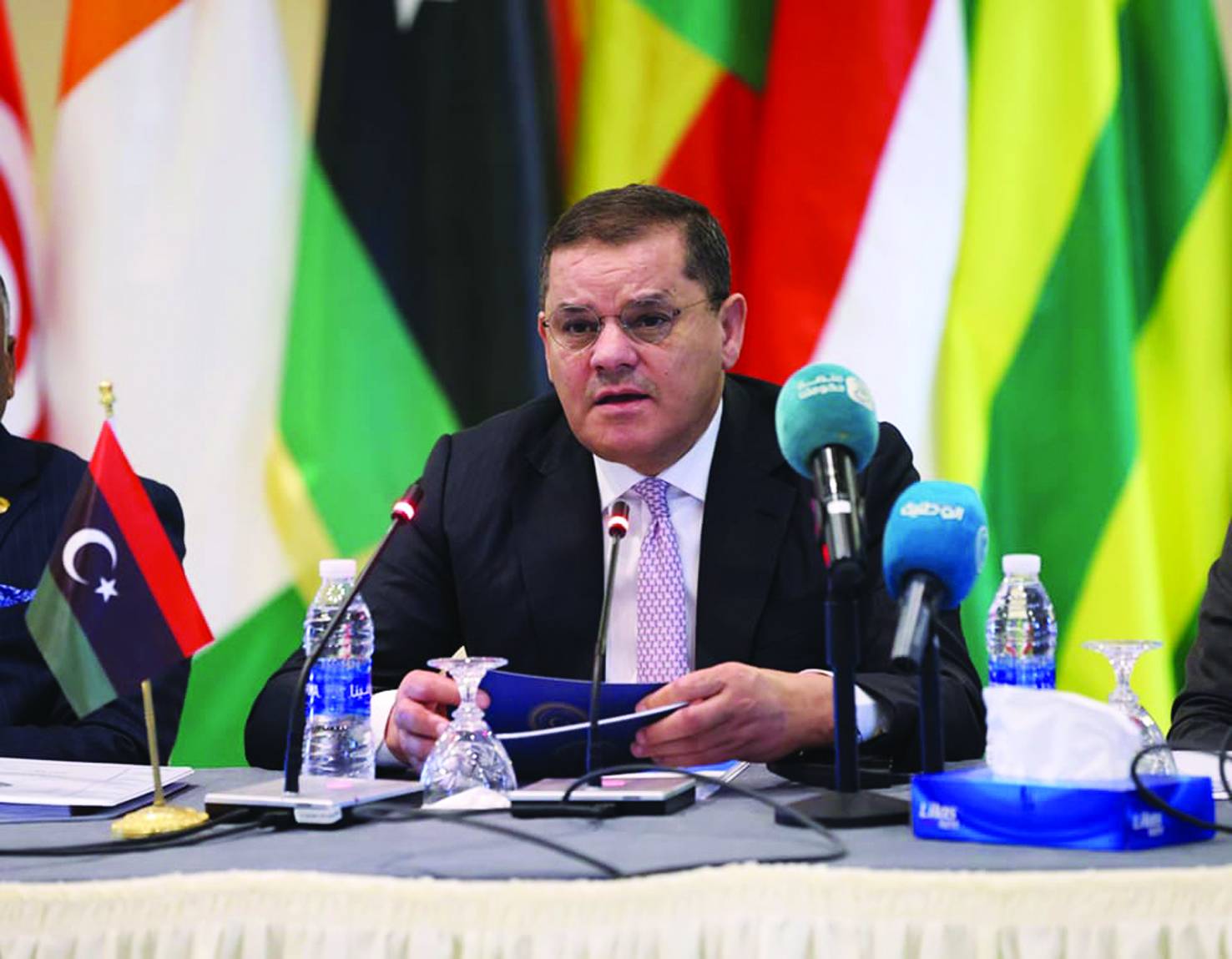 شمال افريقيا المنفي يتوسط اللافي والدبيبة (يمين) والكوني 21 سبتمبر الماضي (المجلس الرئاسي الليبي)
