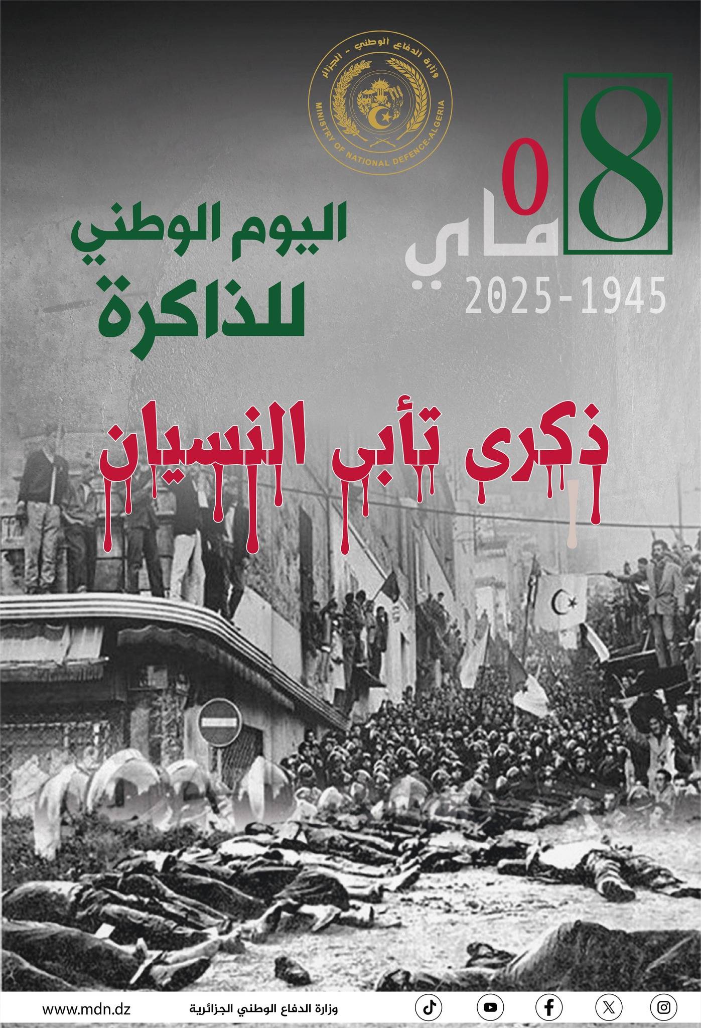 وتحيي الجزائر هذه الأيام الذكرى الـ80 لمجازر 8 مايو (أيار) 1945، التي راح ضحيتها نحو 45 ألف جزائري في مدن الشرق، على أيدي رجال الشرطة الفرنسية ضد متظاهرين طالبوا بالاستقلال، مقابلاً لمساعدة أبنائهم فرنسا والحلفاء في الانتصار على ألمانيا النازية في الحرب العالمية الثانية، من خلال الانخراط في هذه الحرب ضمن الجيش الفرنسي.