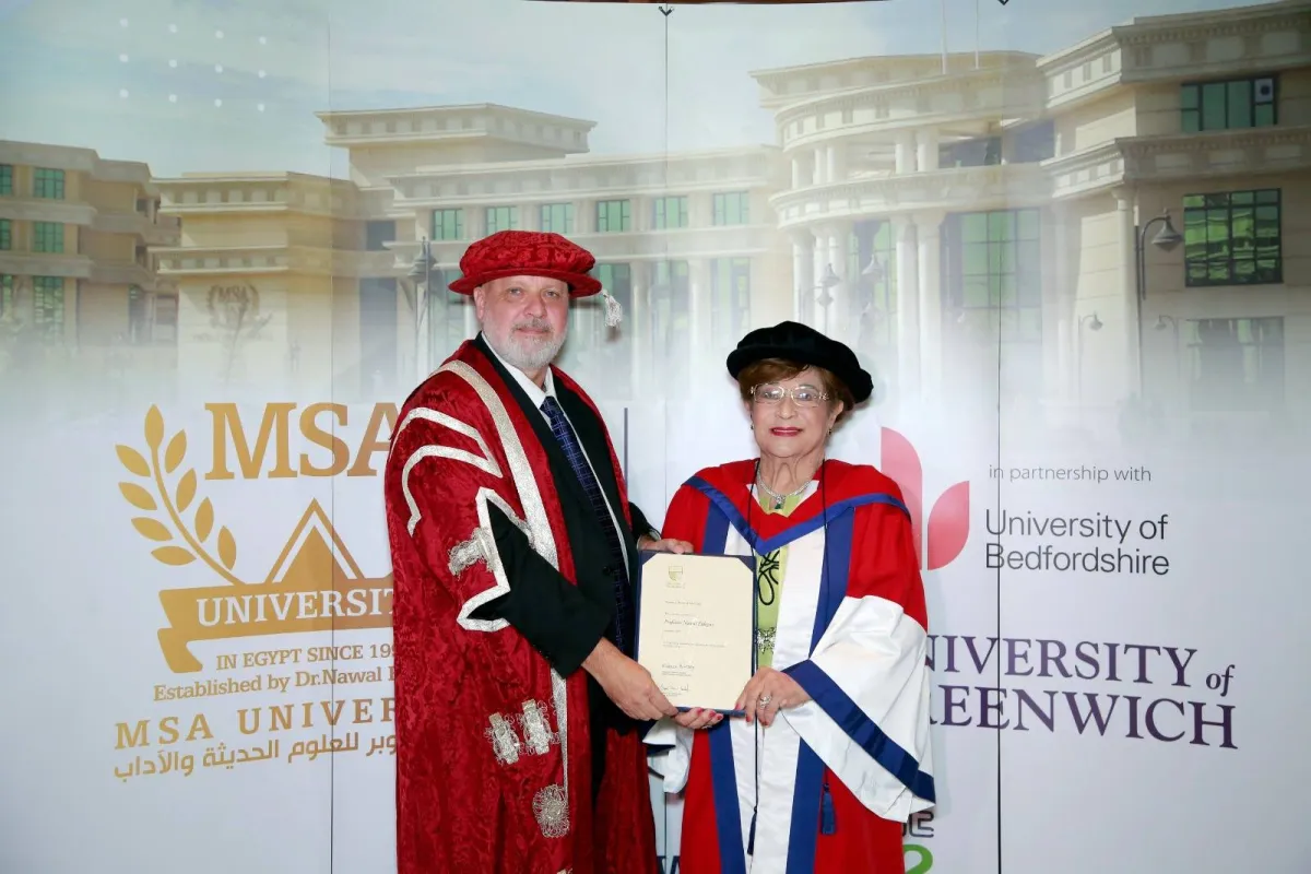 خلال تكريم د.نوال الدجوي من إدارة مستشفى «الناس»... (حساب جامعة «MSA» على «فيسبوك»)