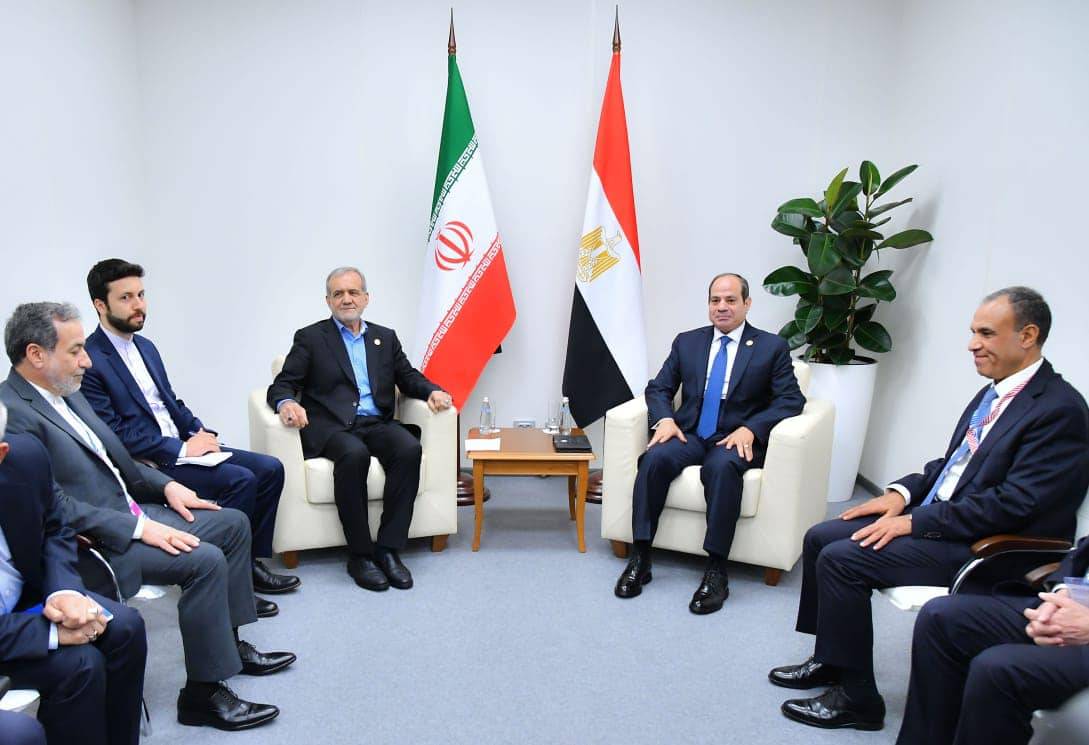 وقبل أيام، أعرب السيسي في اتصال هاتفي مع بزشكيان عن رفض مصر الكامل للتصعيد الإسرائيلي ضد إيران، لما يمثله من تهديد لأمن واستقرار الشرق الأوسط في وقتٍ بالغ الدقة تشهد فيه المنطقة أزمات متعددة ومتفاقمة.