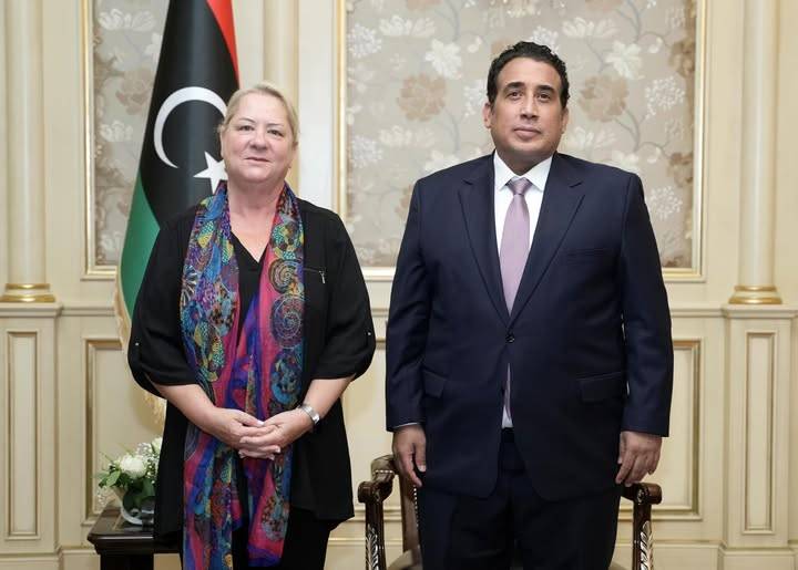 في شأن مختلف، استقبل رئيس المجلس الرئاسي، محمد المنفي، سفيرة كندا لدى ليبيا، إيزابيل سافارد، وذلك بمناسبة انتهاء مهامها الرسمية سفيرة فوق العادة ومفوضة لبلادها لدى الدولة الليبية.