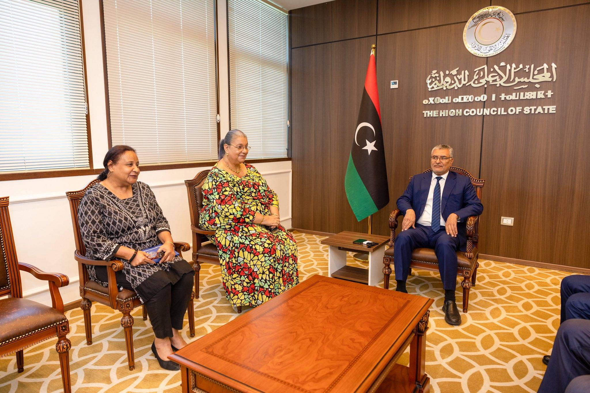 وأكد تكالة «التزامه بدعم أي مسار حواري يحقق الاستقرار، ويعزز المشاركة الوطنية»، مشدداً على «أهمية الملكية الليبية للعملية السياسية، وأن تهدف إلى دفع الليبيين نحو تحقيق الاستقرار والازدهار».
