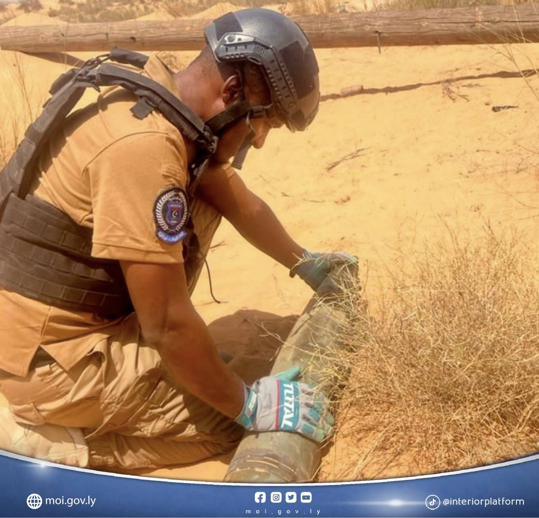 في غضون ذلك، أعلنت وزارة الداخلية بحكومة «الوحدة» أن فريق التفتيش الأمني وتفكيك المتفجرات بالفرع الغربي، تمكن من انتشال قذيفة هاوزر عيار «155» غير منفجرة، عُثر عليها داخل مزرعة بمدينة الزاوية بعد بلاغ من أحد المواطنين. موضحة أنه جرى تأمين الموقع، ونقل القذيفة إلى مخازن مخصصة، تمهيداً لإتلافها وفق الضوابط الفنية المعتمدة، بحسب الوزارة.