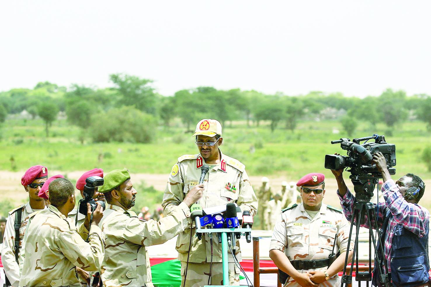 قائد «قوات الدعم السريع» محمد حمدان دقلو (حميدتي) مع قواته في جنوب دارفور (أرشيفية - أ.ف.ب)