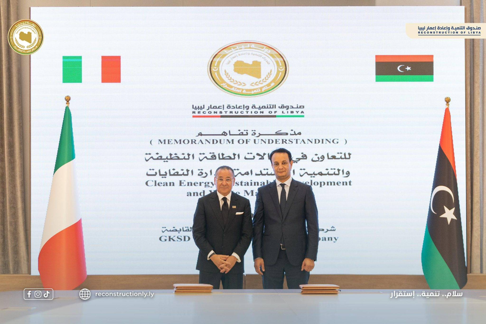 وأوضح صندوق الإعمار مساء الخميس، أن بلقاسم بحث مع كارافيلي، آفاق التعاون الاستراتيجي بين ليبيا وإيطاليا في مجالات الصحة، والتدريب الطبي، والبنية التحتية، والطاقة النظيفة، وإدارة النفايات وتحويلها إلى طاقة، بما يعزز الشراكات العملية الداعمة للتنمية المستدامة.