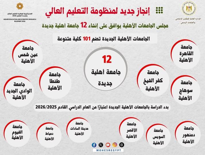 وينطلق العام الدراسي الجديد بمصر، السبت، في المدارس والجامعات، وتطفو مسألة تحمل أعباء التعليم على رأس الاهتمامات، ويأخذ النقاش اهتمام أكبر هذا العام بالتعليم الجامعي مع افتتاح 12 جامعة أهلية جديدة، وفق ما أعلنته وزارة التعليم العالي المصرية.
