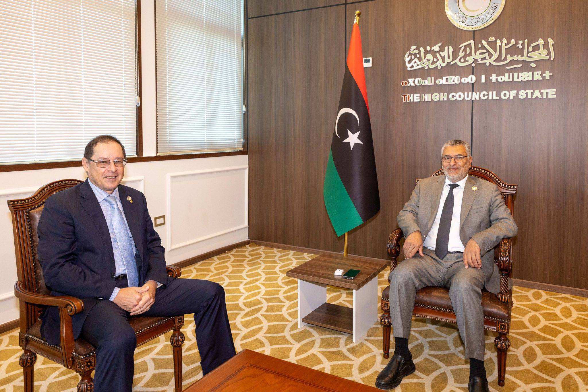 في السياق ذاته، بحث محمد تكالة، رئيس المجلس الأعلى للدولة، مع السفير الروسي لدى ليبيا أيدار أغانين، في مقر المجلس بطرابلس، الأوضاع السياسية، والجهود المبذولة للدفع بالعملية السياسية، إضافة إلى «خريطة الطريق»، كما جرى استعراض العلاقات بين البلدين، وسبل تعزيز التعاون، وآلية تفعيل لجنة الصداقة الليبية - الروسية.