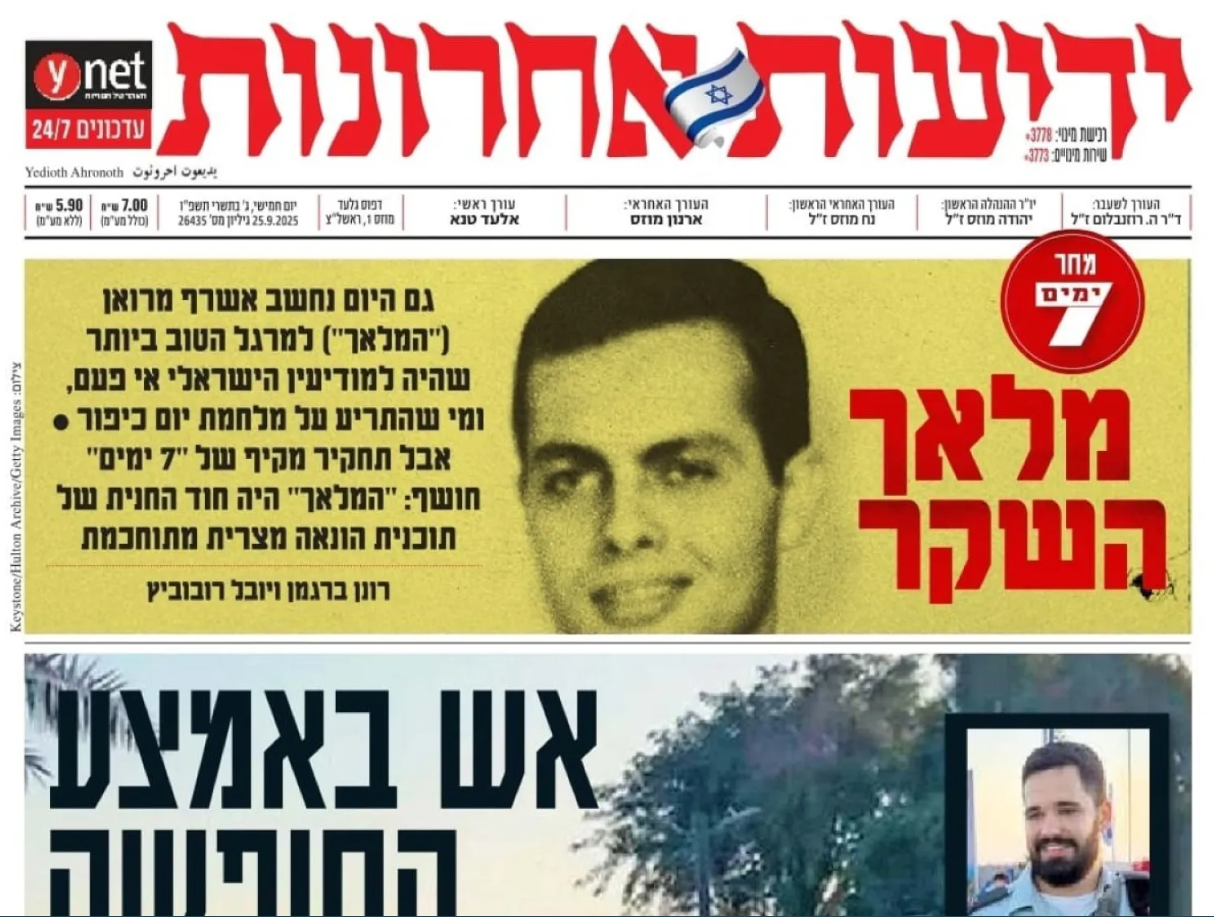 تحقيق يديعوت أحرونوت عن البطل أشرف مروان فوق العظمة بدرجتين تلاتة.. حاجة كده توريك الدماغ المصري لما بيشتغل بيلعلع ازاي..يديعوت أحرونوت نفسها بتقول إن أشرف مروان كان «الترس المركزي» في خطة الخداع الاستراتيجي قبل حرب أكتوبر، وانه تلاعب برئيس الموساد «كالأبله».. هما اللي قالوا مش...
