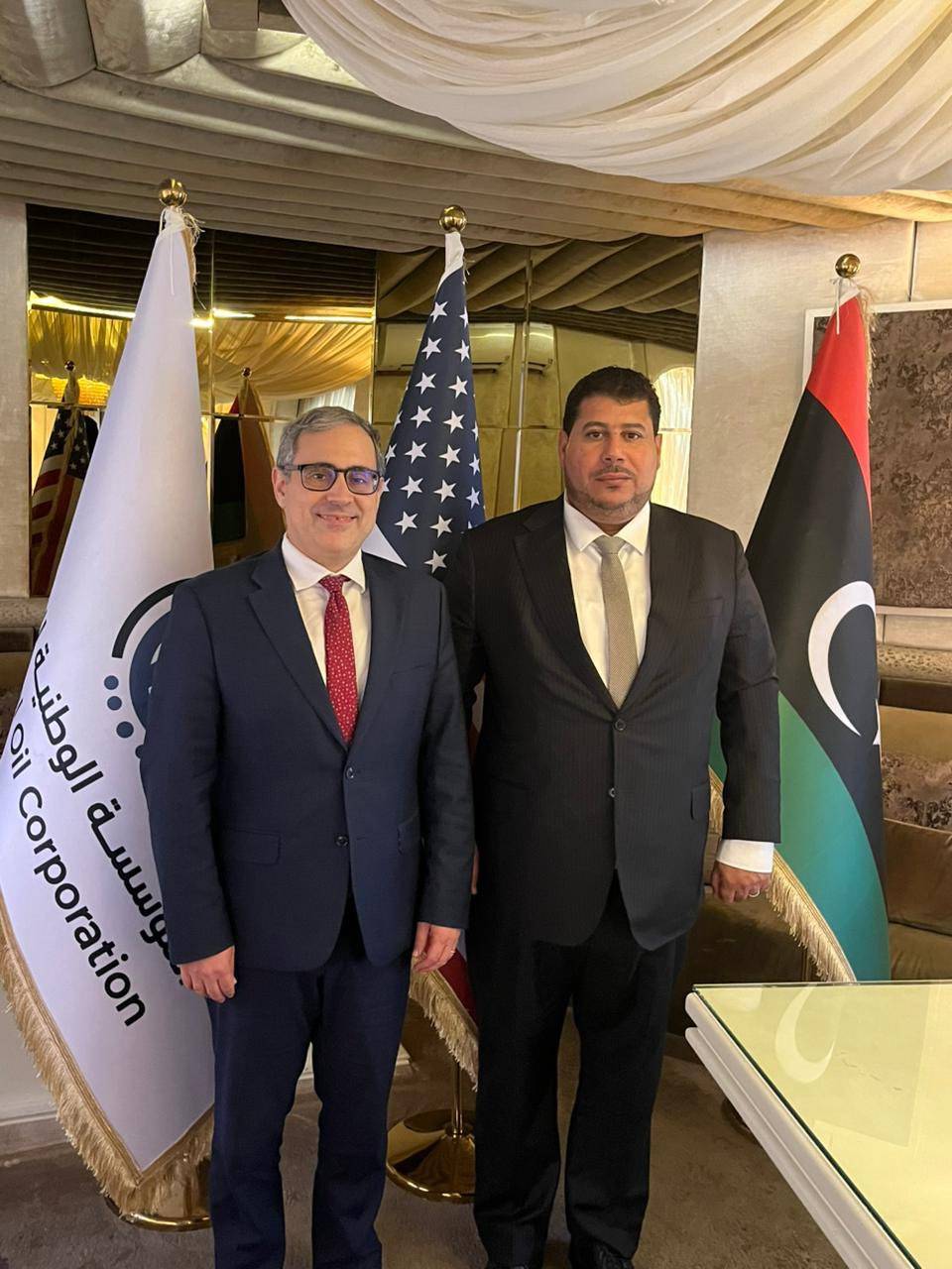 من جانبه، واصل القائم بأعمال السفارة الأميركية، جيريمي برنت، اجتماعاته في طرابلس، حيث بحث مع رئيس المؤسسة الوطنية للنفط المكلّف، مسعود سليمان، سبل توسيع التعاون التجاري لمساعدة المؤسسة على المضي في خططها لتعزيز قطاع الطاقة الليبي وزيادة إنتاج النفط والغاز. واعتبر برنت أن وجود مؤسسة وطنية قوية للنفط «أمر أساسي لخلق مزيد من الازدهار والفرص الاقتصادية» للشعب الليبي، وشركائه الدوليين.
