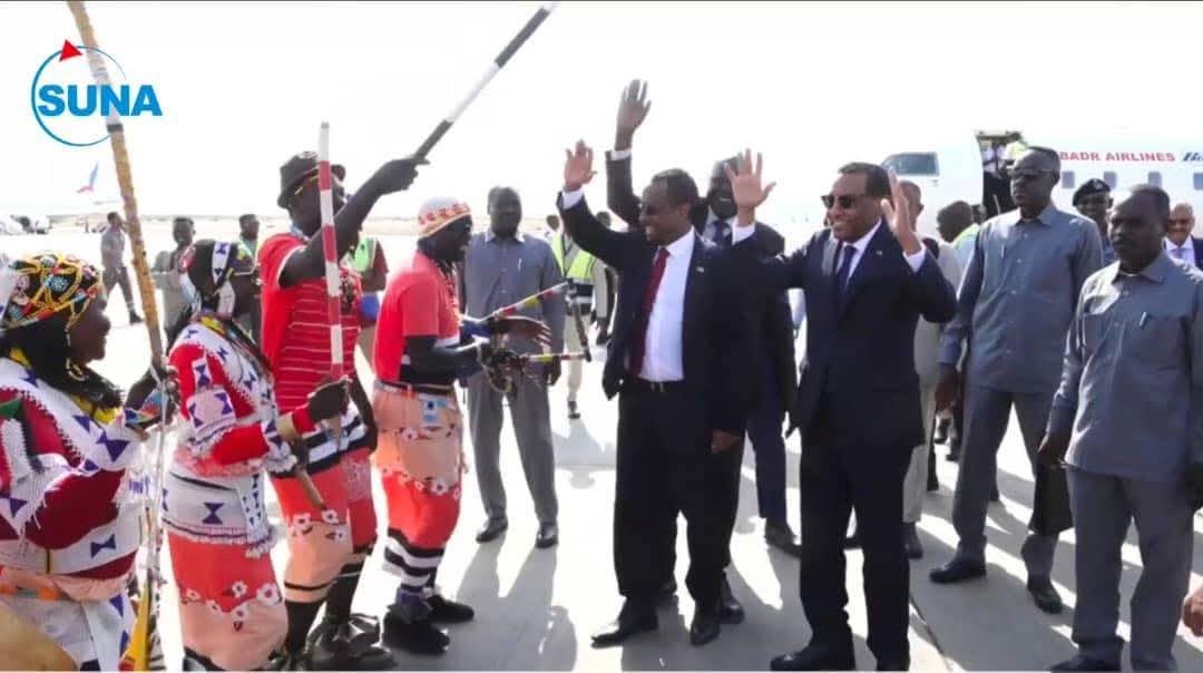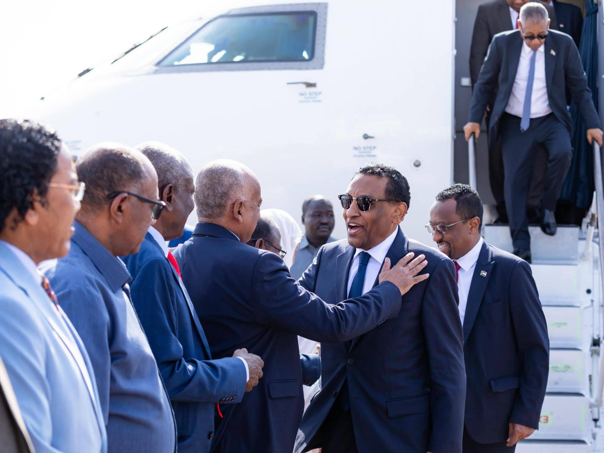 أعضاء الحكومة يستقبلون رئيس الوزراء في مطار بورتسودان (وكالة السودان للأنباء)