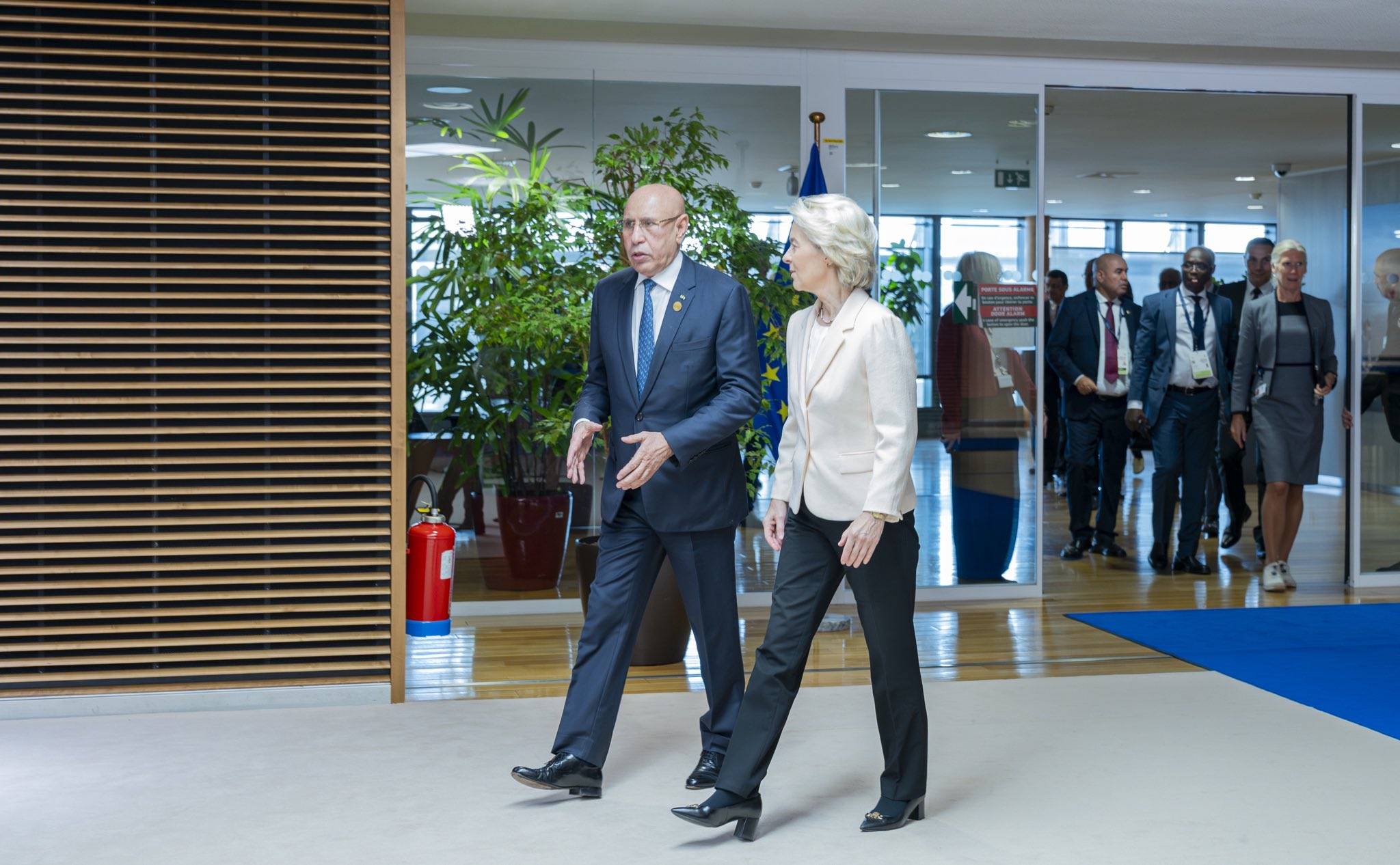 ووقع الرئيس الموريتاني مع رئيسة المفوضية الأوروبية ما وصفته الرئاسة الموريتانية بأنه «شراكة استراتيجية، تمثل مرحلة جديدة في مسار التعاون» بين موريتانيا والاتحاد الأوروبي. وتشير الأرقام المعلن عنها إلى أن موريتانيا حصلت على استثمارات قاربت نصف مليار يورو من الاتحاد الأوروبي في الفترة الممتدة من 2021 حتى 2027، وذلك ضمن مبادرة «غلوبال غيتواي» (Global Gateway).