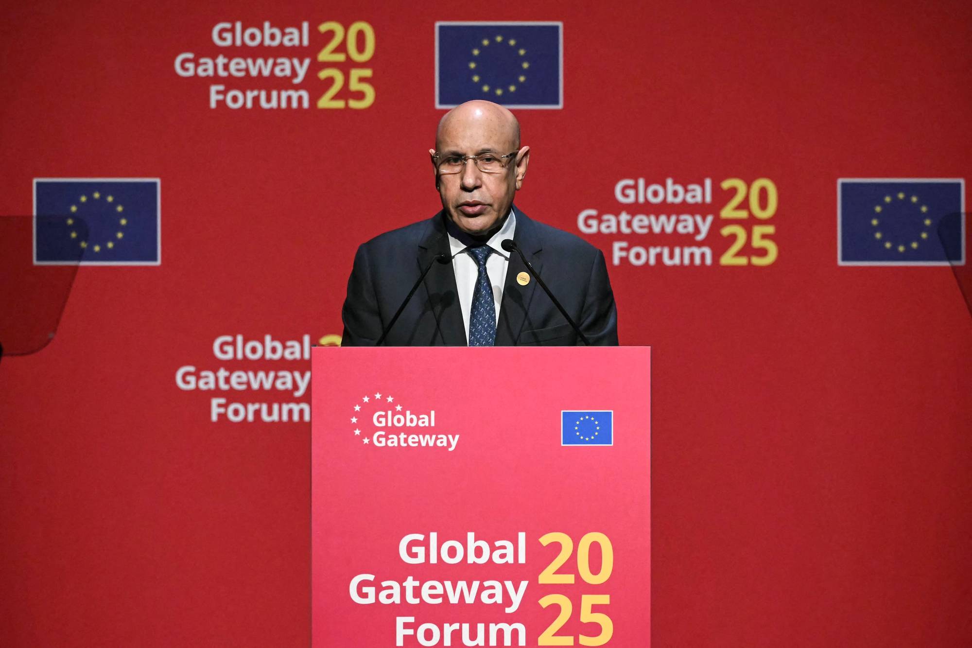 الرئيس الموريتاني يلقي كلمته خلال مشاركته في فعاليات منتدى البوابة العالمية 2025 (Global Gateway) (الرئاسة الموريتانية)