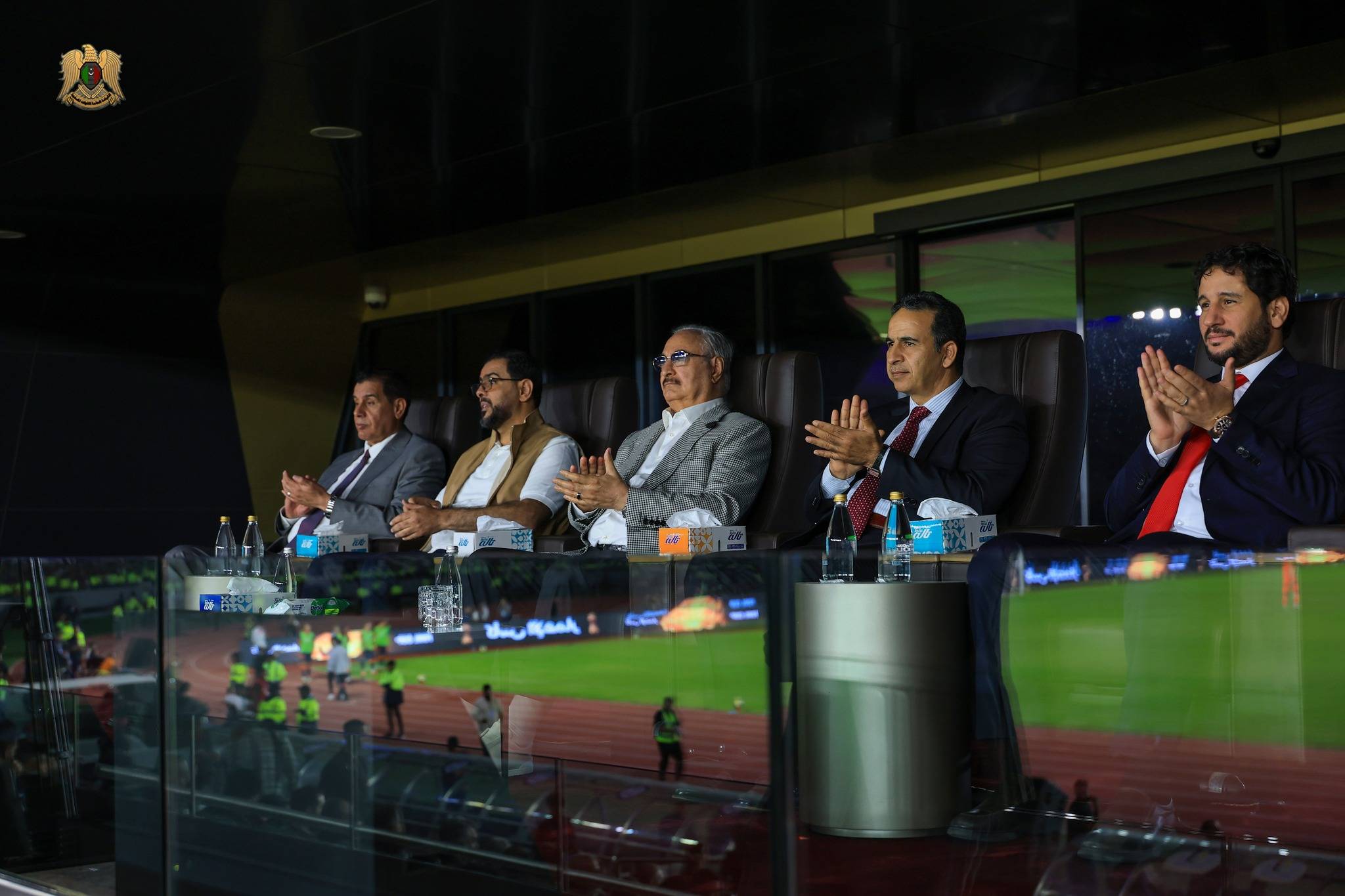 وشهدت المناسبة حضور رئيس حكومة «الاستقرار»، أسامة حماد، ومسؤول صندوق التنمية وإعادة إعمار ليبيا، بالقاسم نجل حفتر، إلى جانب بعض أعضاء مجلس النواب والمسؤولين المحليين. وتأتي إقامة هذه المباراة في إطار الأنشطة الرياضية والثقافية التي تشهدها مدينة بنغازي، والتي تهدف إلى إبراز الاستقرار وعودة الحياة الطبيعية في المناطق المحررة، ودعم جهود إعادة الإعمار والتنمية في ليبيا.