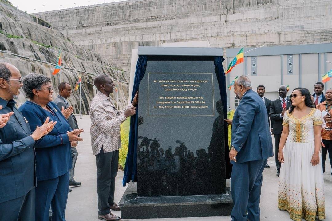إزاحة الستار عن اللوحة التذكارية الخاصة بافتتاح «سد النهضة» الإثيوبي (وكالة الأنباء الإثيوبية)