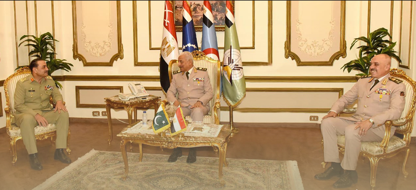 تُعزِّز مصر وباكستان علاقات التعاون العسكري؛ حيث التقى القائد العام للقوات المسلحة، وزير الدفاع والإنتاج الحربي، الفريق أول عبد المجيد صقر، برئيس أركان القوات البرية الباكستانية، المشير عاصم منير، والوفد المرافق له الذي يزور مصر حالياً.