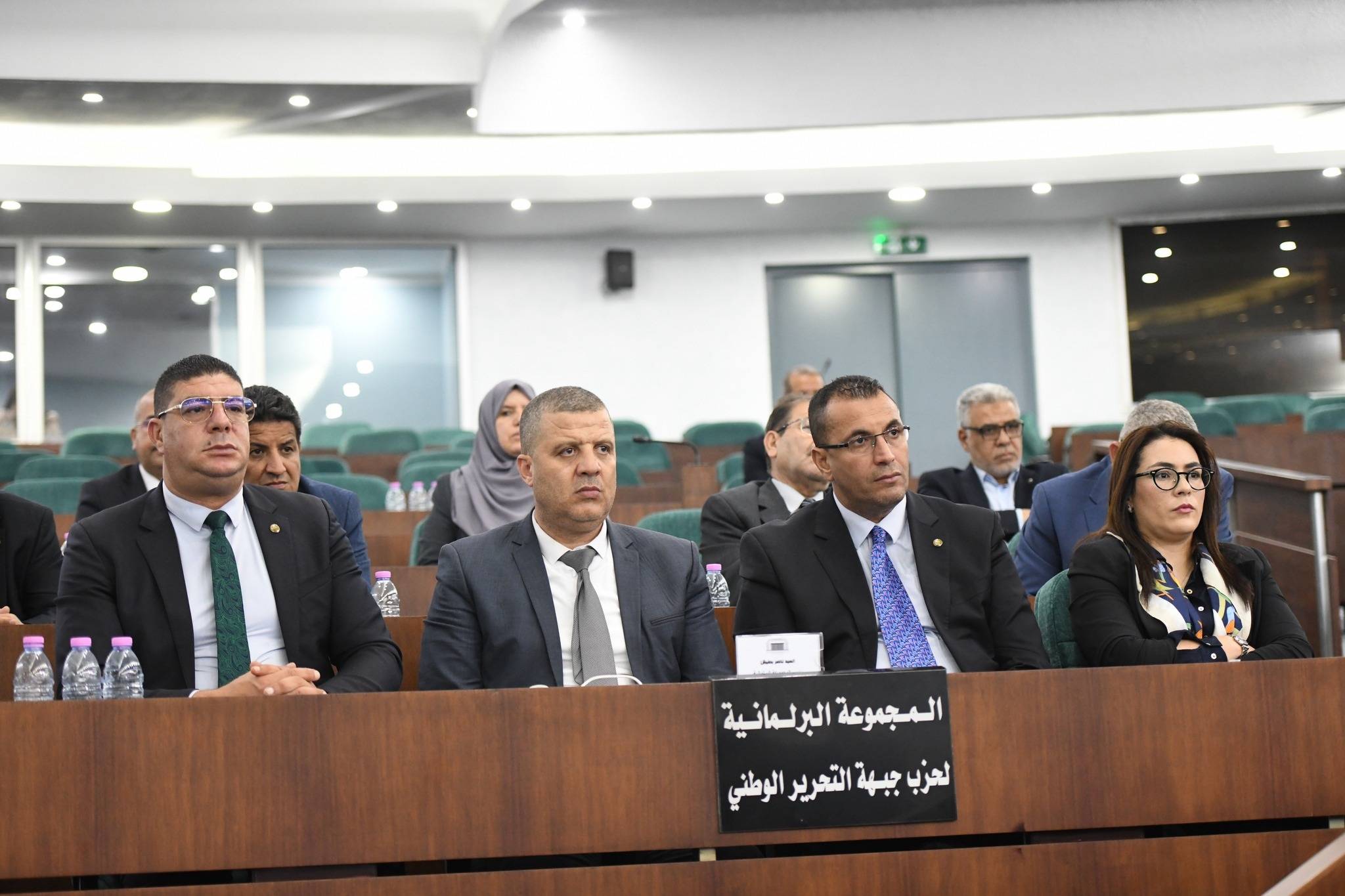 نواب من الأغلبية الرئاسية خلال مناقشة «قانون التعبئة العامة» في البرلمان الجزائري (البرلمان)