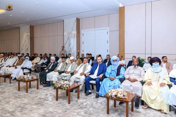 وأشاد بما وصفه «بالمواقف الوطنية لقبائل مناطق الساحل الغربي»، مستذكراً «وقوفهم صفاً واحداً إلى جانب أهلهم في مدينة درنة خلال كارثة إعصار دانيال»، ونقل عنهم «تقديرهم لجهوده في ترسيخ الأمن والاستقرار، ودعمهم لمساعيه في بناء الوطن وإعماره وحمايته».