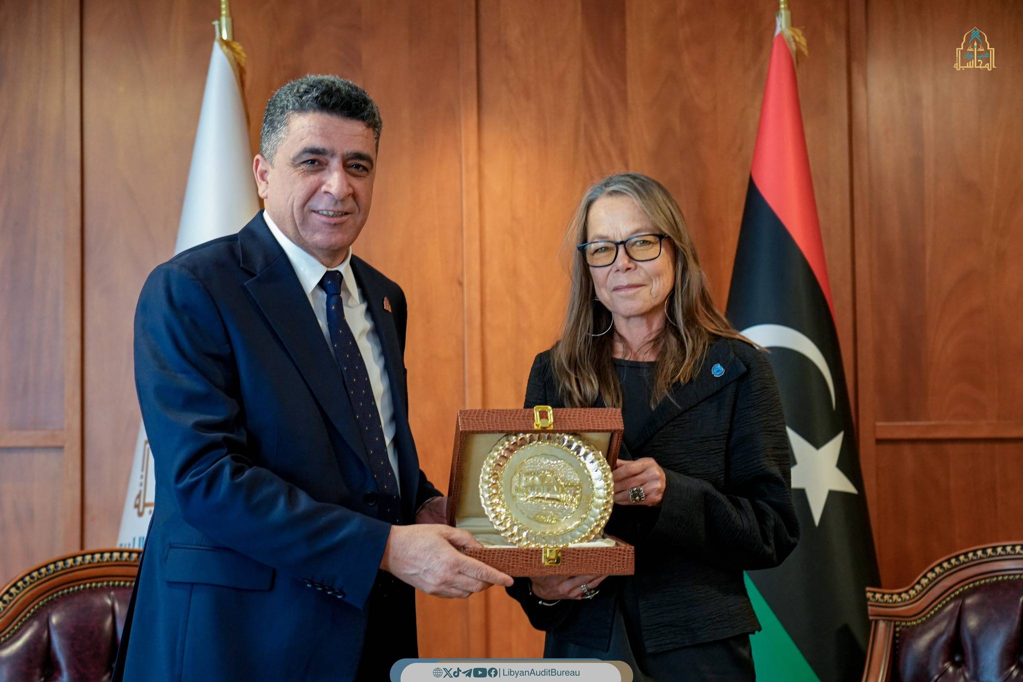 كما تطرق اللقاء إلى الاتفاقية الموقّعة بين ديوان المحاسبة الليبي وبرنامج الأمم المتحدة الإنمائي (UNDP)، وما تمثله من خطوة مهمة نحو تعزيز التعاون المشترك بين الجانبين، في مجال الدعم الفني، وتنمية القدرات المؤسسية، وفي مجال متابعة المشاريع التنموية المنفذة داخل ليبيا.