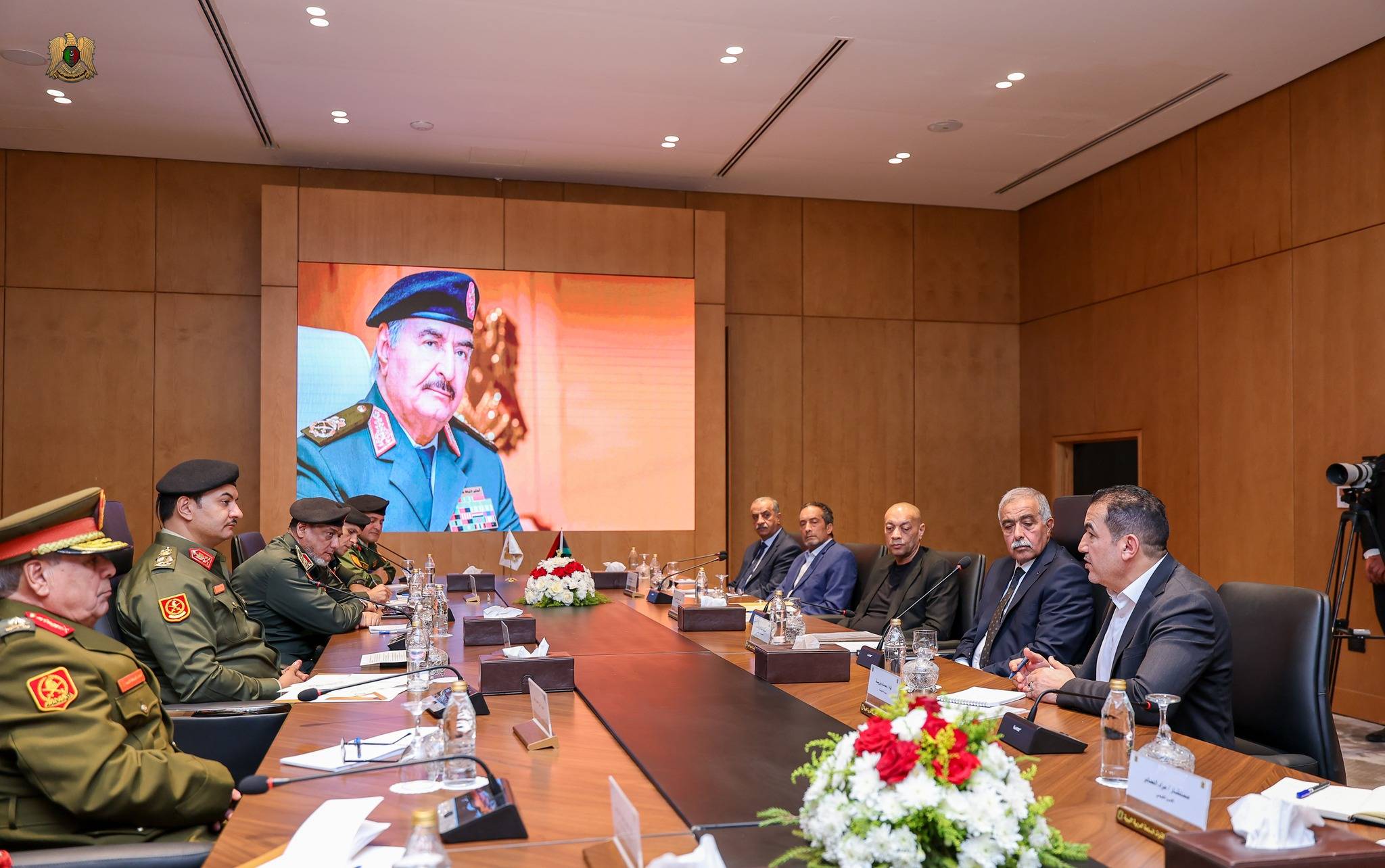 وكان صدام حفتر، نجل ونائب حفتر، قد أكد أهمية توحيد الجهود بين الأجهزة الأمنية والوحدات العسكرية، وتفعيل غرف العمليات المشتركة، واعتماد خطط عملية لحفظ الأمن القومي في مختلف مجالاته. وقرَّر في اجتماع موسَّع ترأسه مساء الاثنين في بنغازي، بحضور مستشار الأمن القومي عبد الرازق الناظوري، ووزير الداخلية بالحكومة المكلفة من مجلس النواب عصام أبوزريبة، وعدد من القيادات الأمنية والعسكرية، تشكيل 6 لجان متخصصة بإشراف الناظوري لمتابعة الأزمات المتعلقة بالوضعَين الاقتصادي والأمني، بقصد ضمان توفير الخدمات الأساسية للمواطنين.