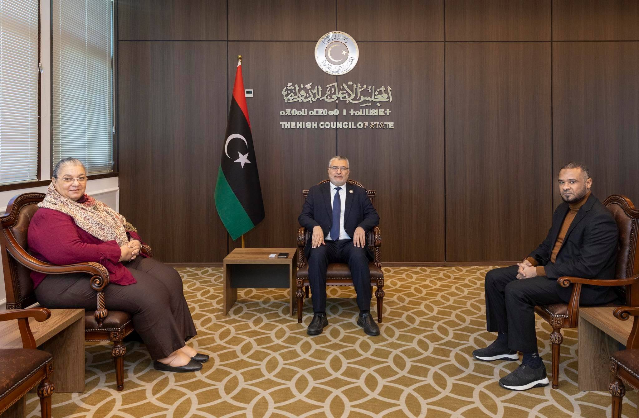 وأوضح أن اللقاء استعرض خريطة الطريق الأممية للحل السياسي في ليبيا، وآليات تنفيذها بما يضمن الوصول لمسار ديمقراطي يلبي تطلعات الليبيين، إضافة إلى استعراض ما تم التوصل إليه من اتفاقات حول اختيار شاغلي المناصب السيادية بين لجنتَي المناصب بمجلسَي النواب و«الدولة».