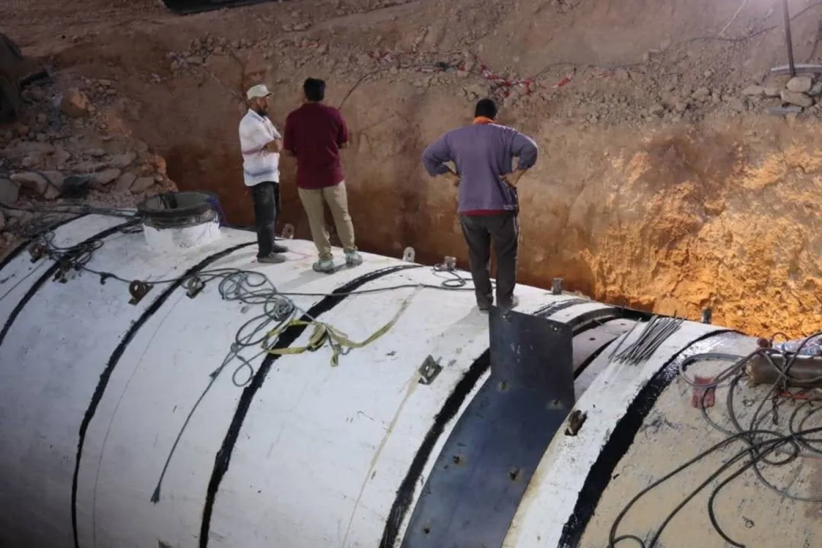 فنيون خلال إزالة تعديات على مسار «النهر الصناعي» في ليبيا (إدارة النهر الصناعي)