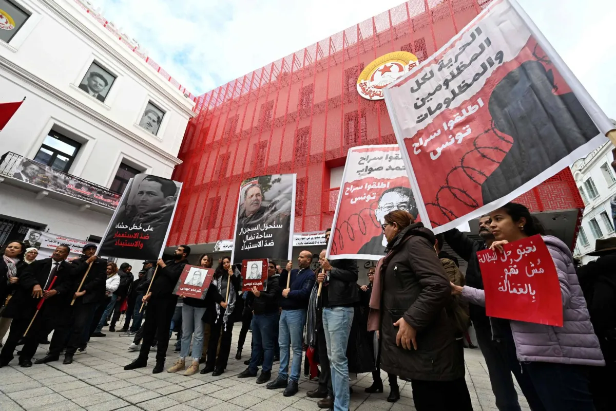 وتزامنت هذه المظاهرة مع اعتقال الشرطة التونسية، الخميس، أحمد نجيب الشابي (82 عاماً)، أحد أبرز قادة المعارضة في تونس ومن بين أشدّ منتقدي الرئيس قيس سعيّد، لتنفيذ حكم بالسجن لمدة 12 سنة بتهمة التآمر على أمن الدولة، وذلك في أحدث مؤشر على تصاعد حملة مستمرة ضد قادة المعارضة.